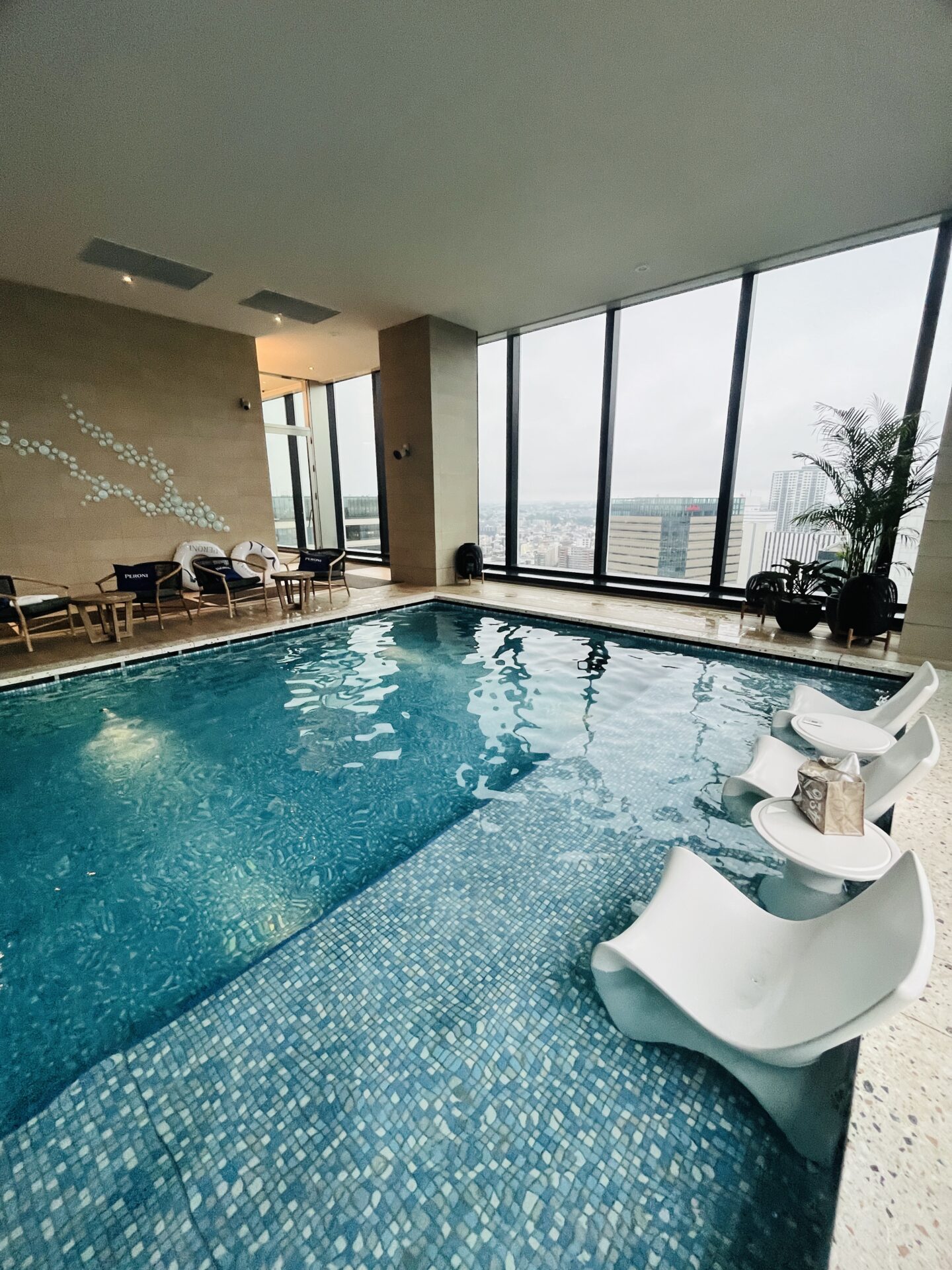 「三井ガーデンホテル横浜みなとみらいプレミア」の都会の上空に浮かぶ贅沢な空間、20階にあるスカイプール「LA MAGNOLIA(ラ・マグノリア)」は、屋内と屋外の2つのプールを備えています。