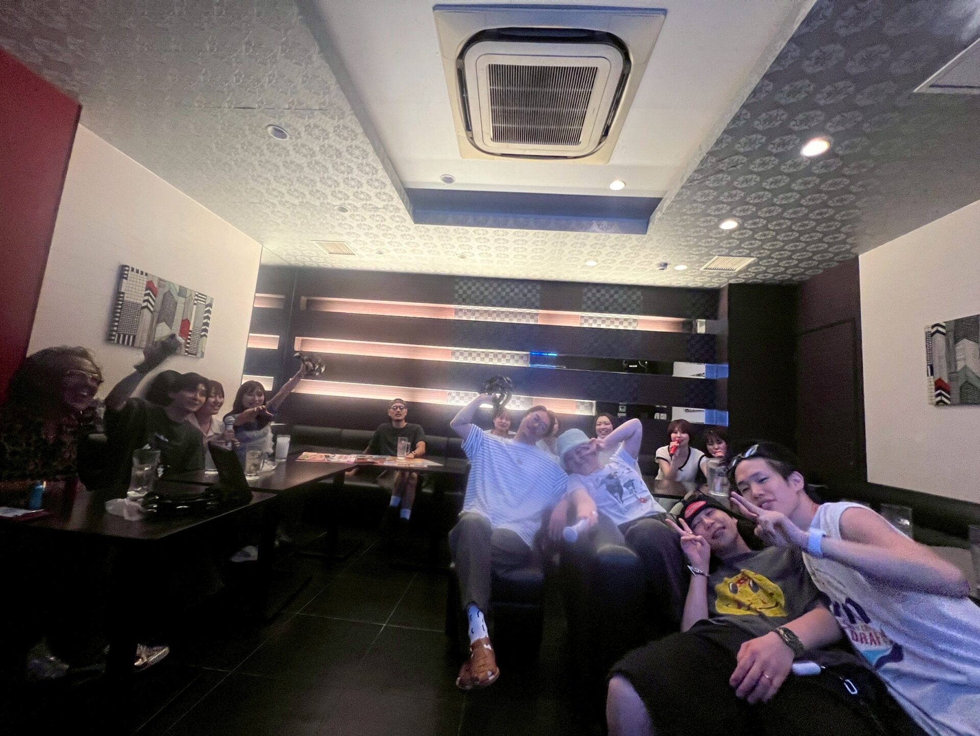 2次会は、お決まりのカラオケ、土橋も寝ずに頑張りました〜