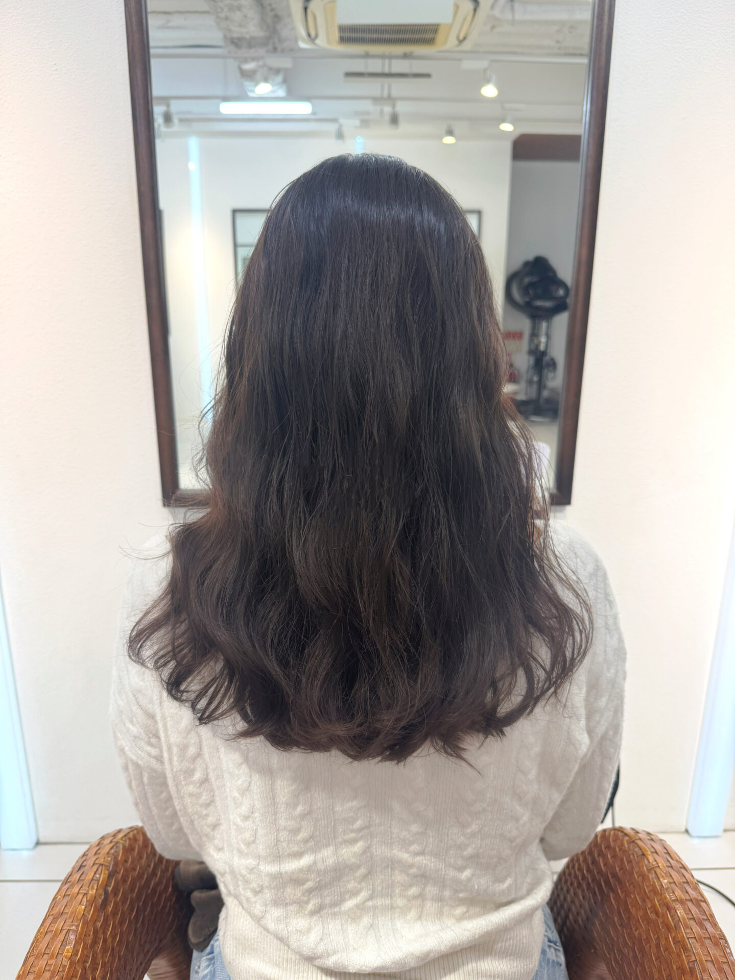 スキバサミを使わないカットでベースのヘアも作っているので、よりもちがよく崩れにくいヘアスタイルになっています!