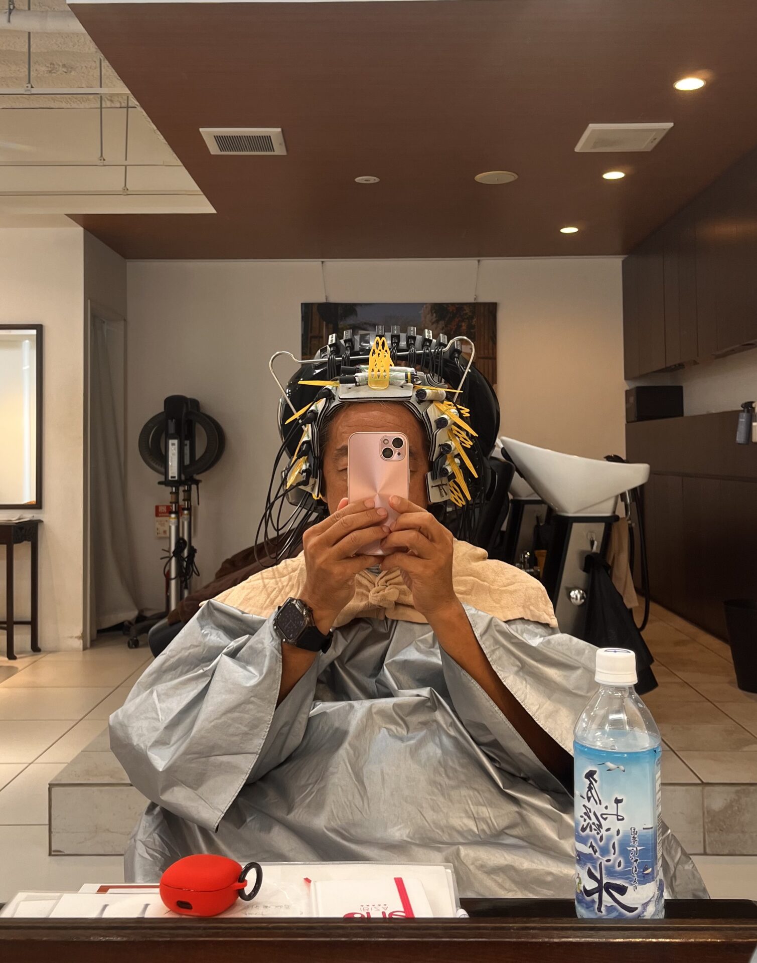 低温デジタルパーマは1人巻き、でもスピーディですね。