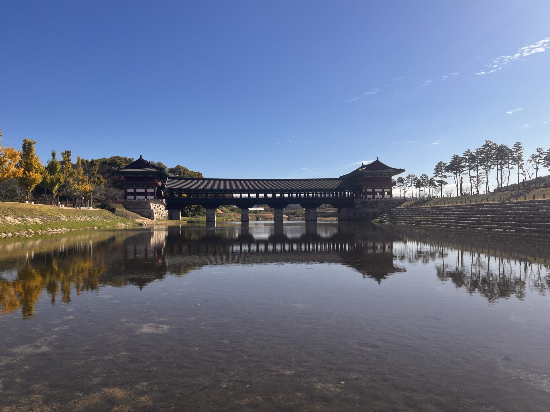 昼は史跡散策、最古の展望台瞻星台(チョムソンデ)や月精橋(ウォルジョンギョ)も見れました。