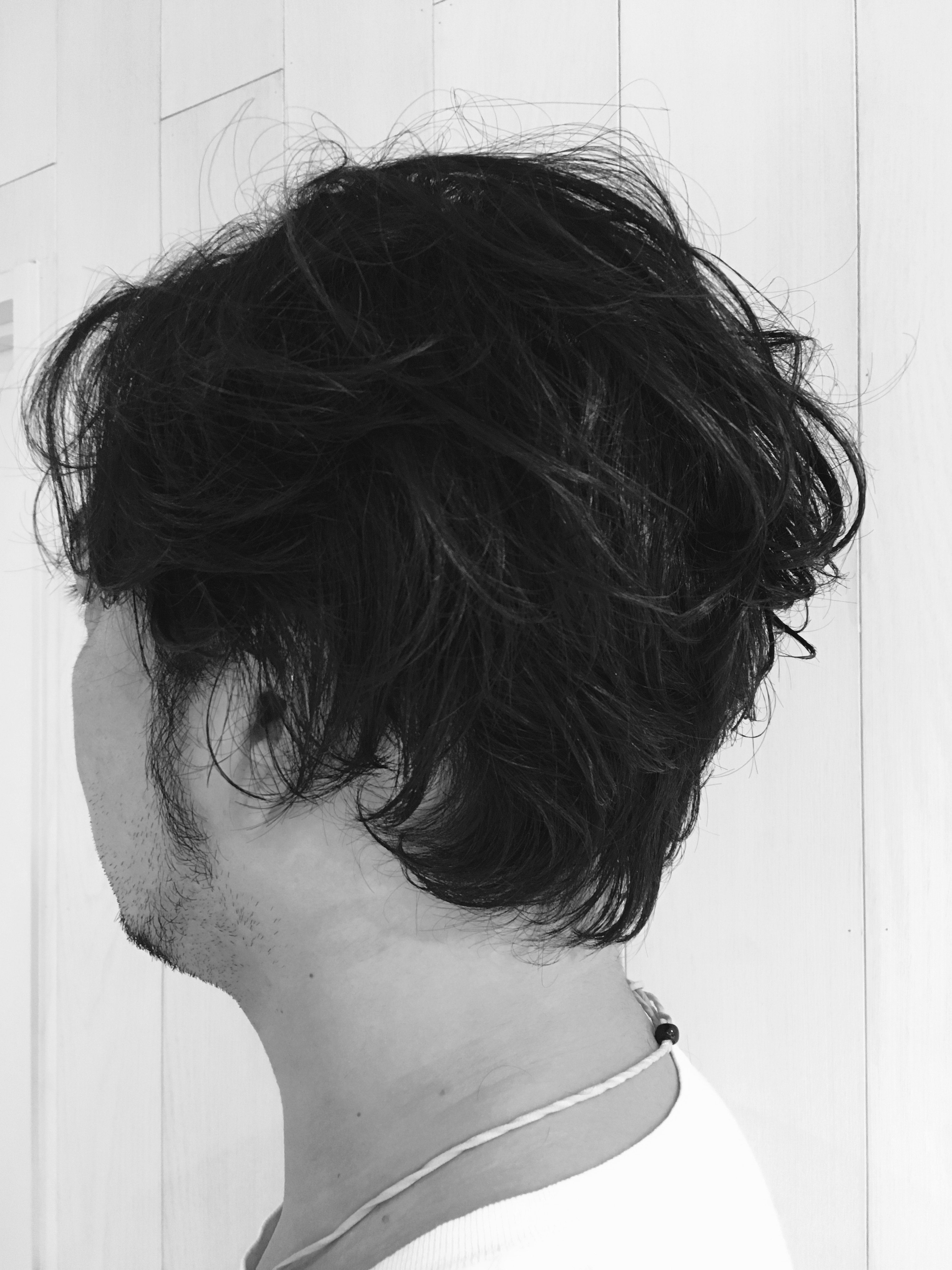 くせ毛の人はくせをいかしてパーマスタイルっぽくRカットとスライドカットで施術できますよ!