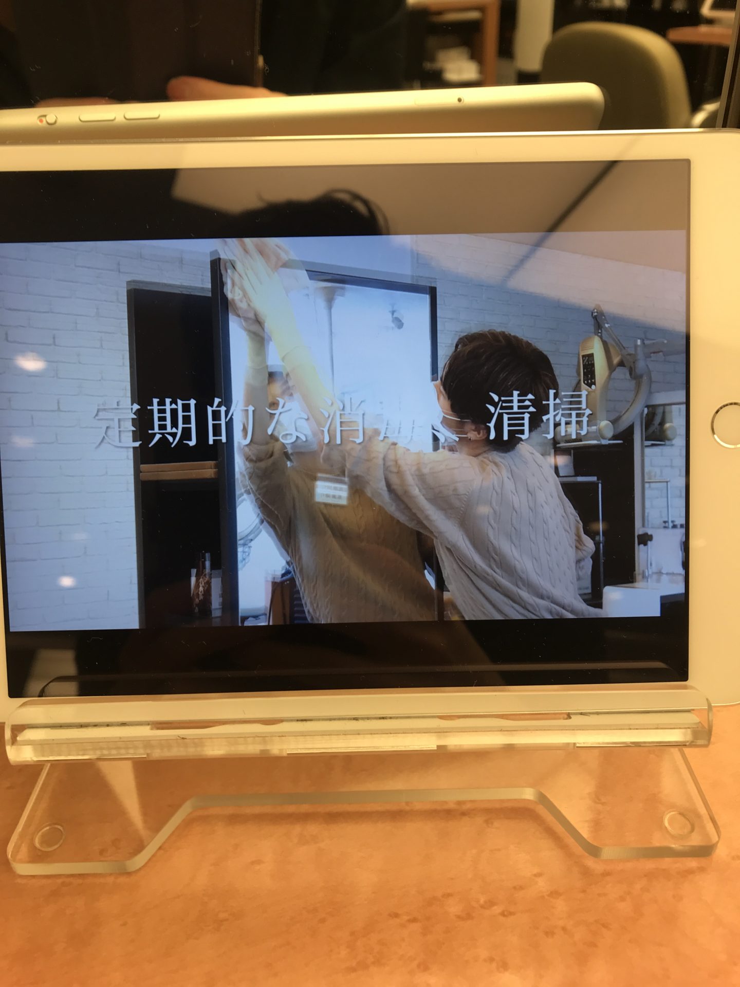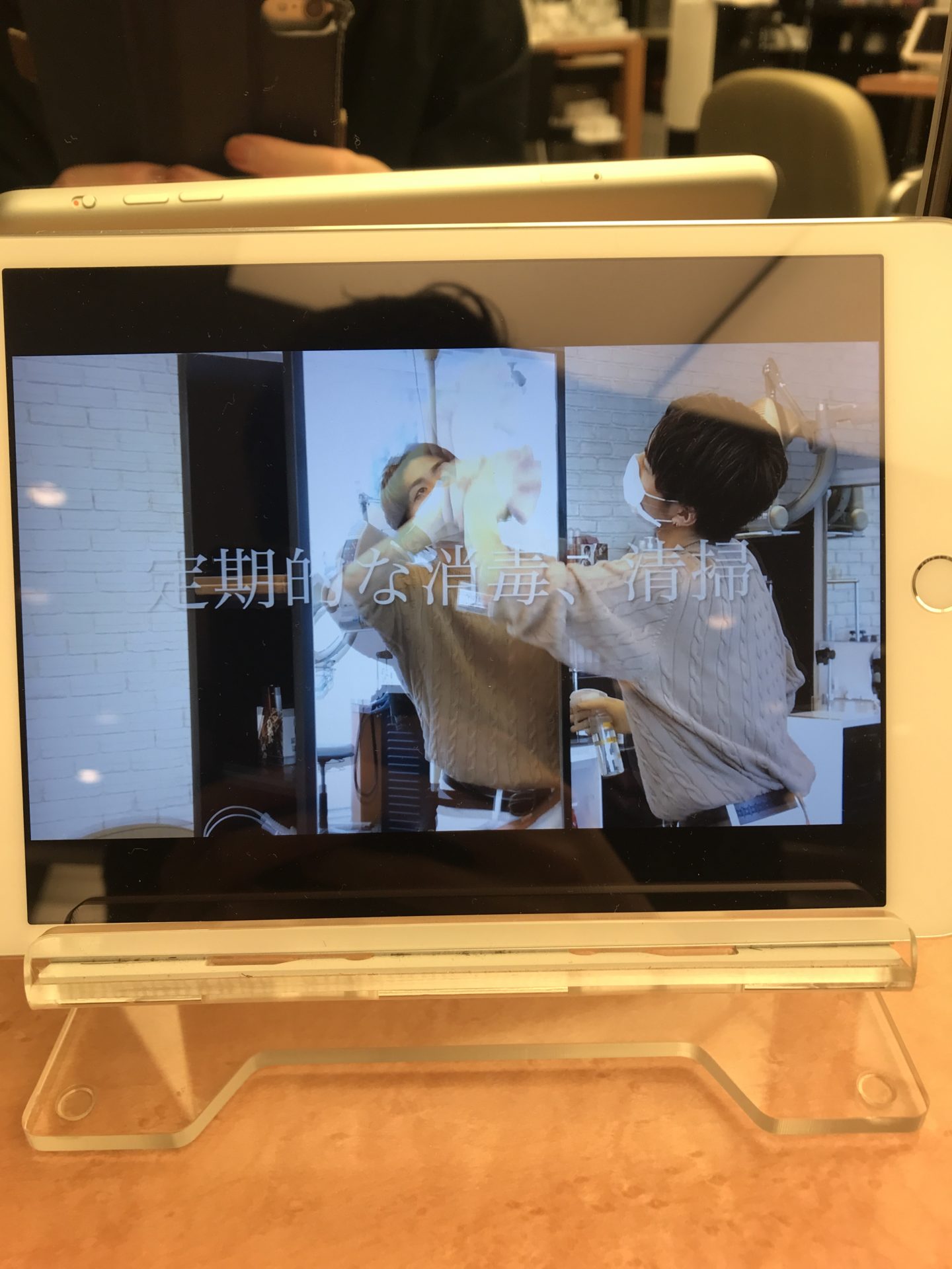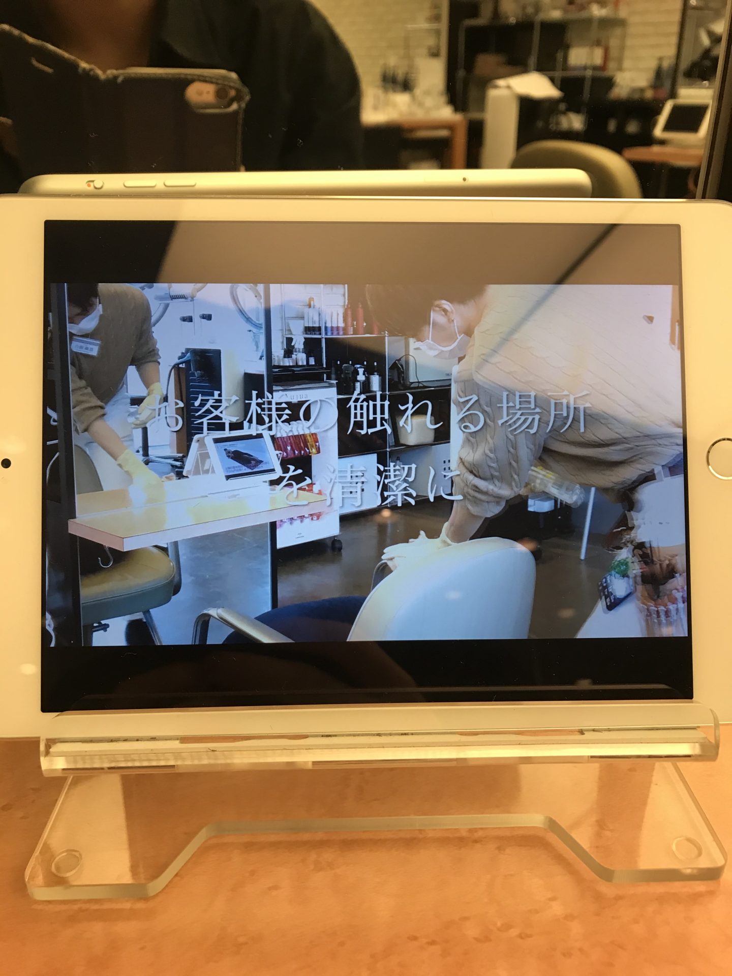 なんの映像で自分が流れるかというとコロナ対策で席や椅子、鏡を消毒していることをお客様に伝える映像です!