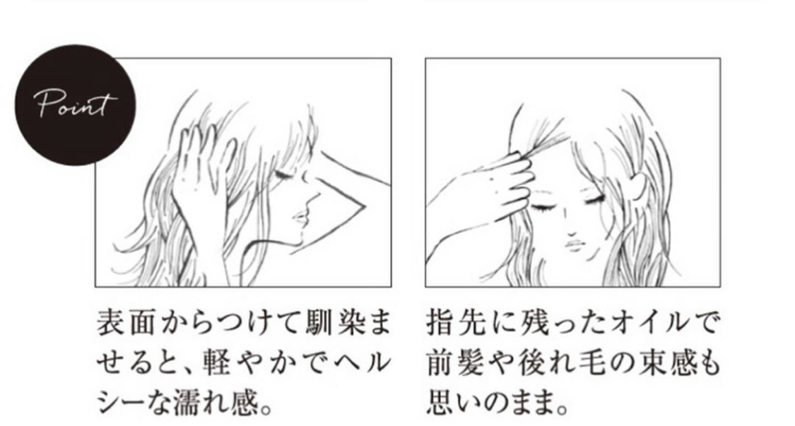 前髪や後れ毛はつけすぎないように最後に手に少量残ったものをつけます。