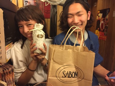 今回の同期会は焼き肉屋さんからの焼き鳥屋さんというなんとも不思議な感じではありましたが、2年以上頑張ってくれた安藤に僕と磯くんからプレゼントを贈らせて頂きました!
