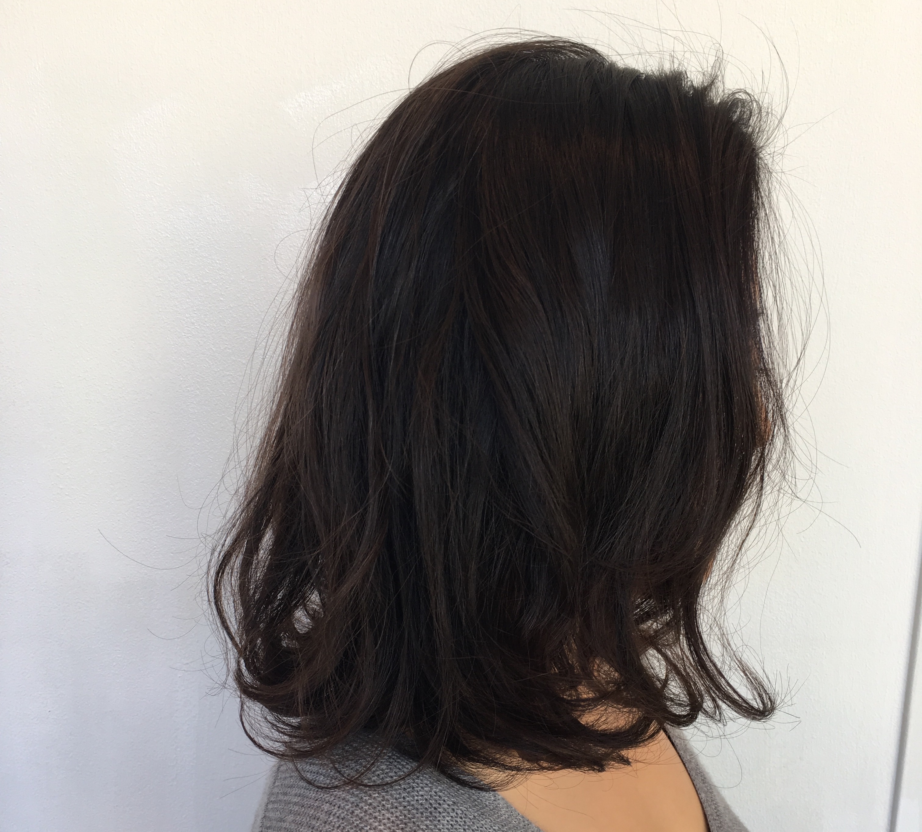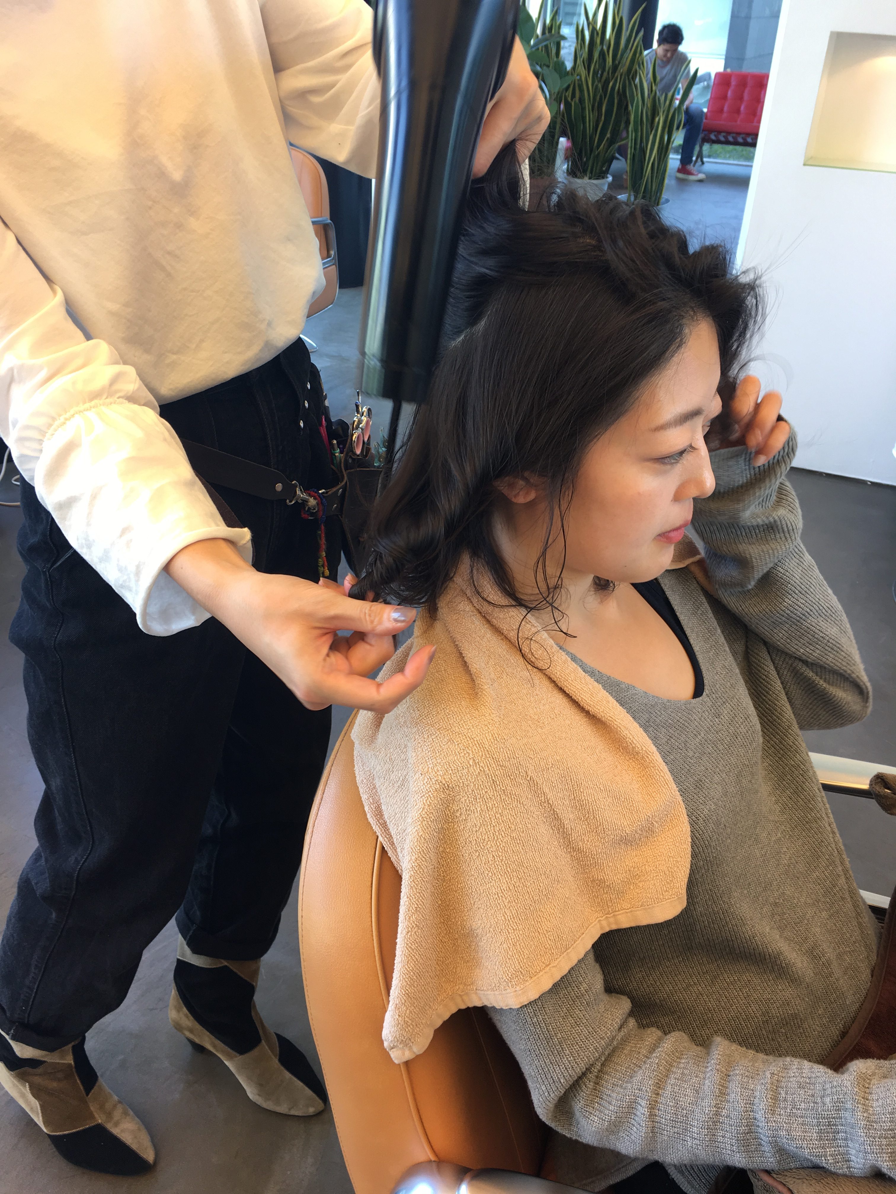 根元をまずしっかり乾かします! 根元をしっかりいろんな方向に乾かすとトップのボリュームがふんわりするんですよ~img_2529