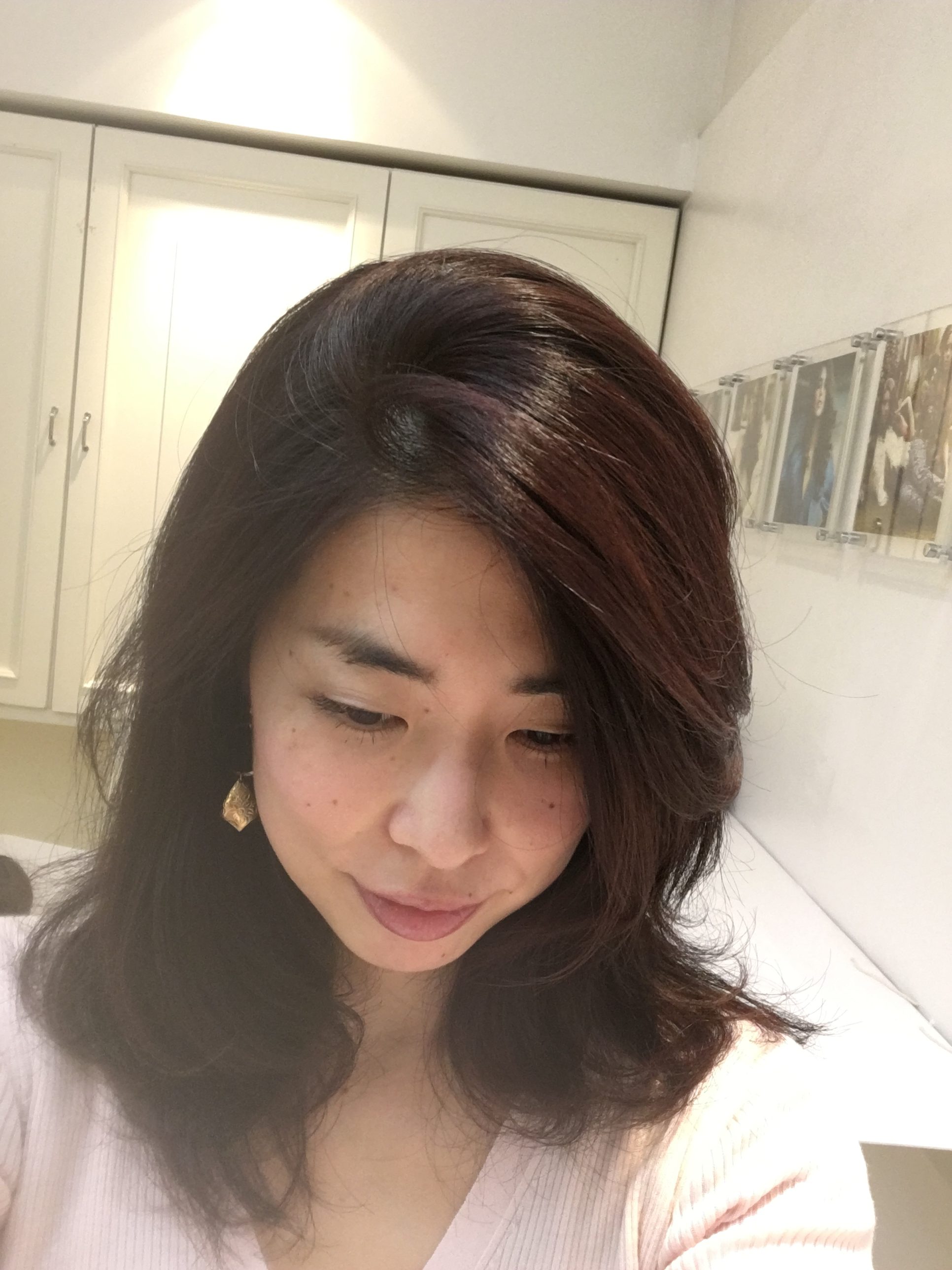 分け目をつけずに乾かし、ふんわりするようにスタイリングすれば、カラーをする前に何日かしのげますね~☆