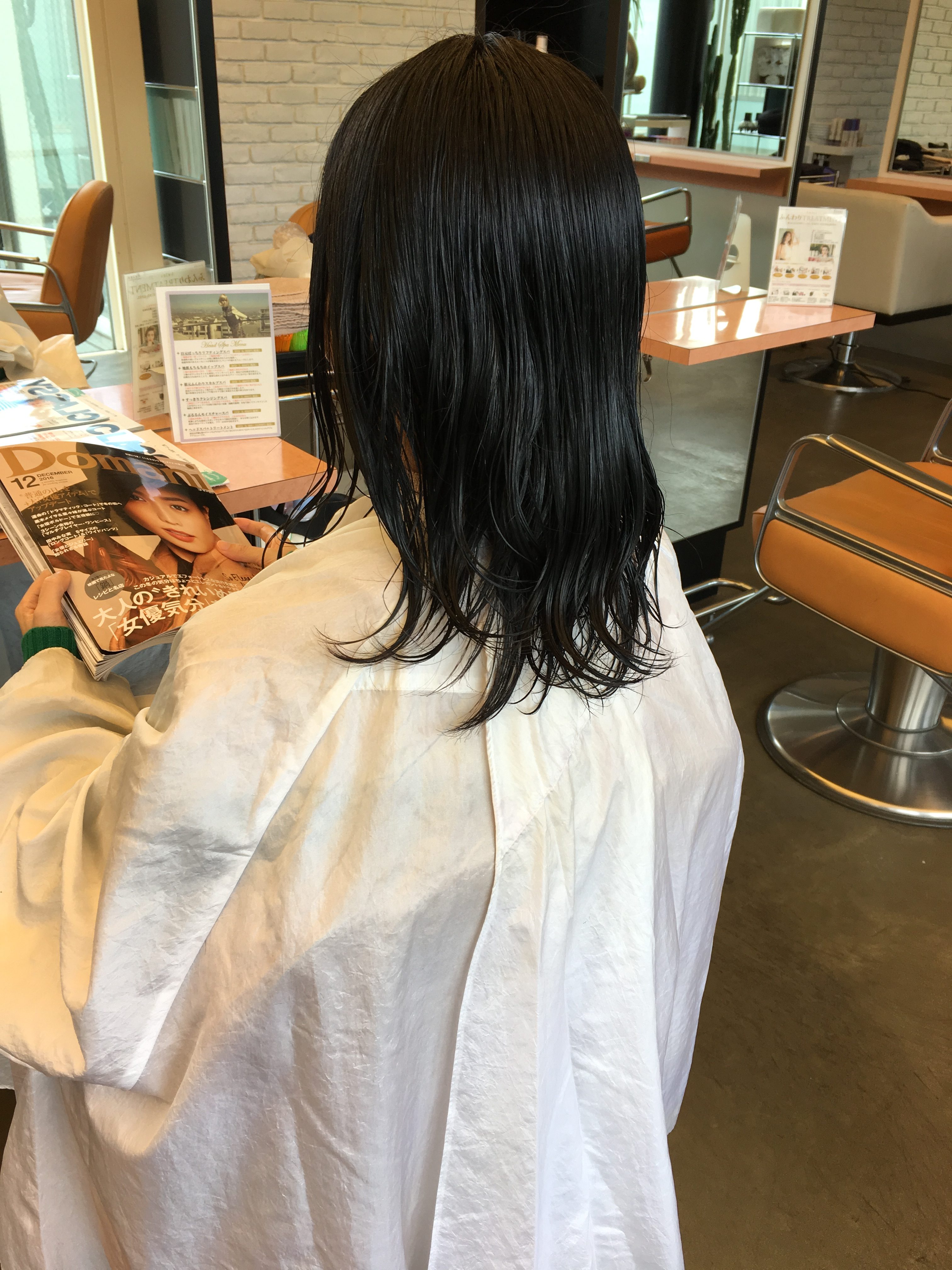 パーマをかけて濡れている状態です↓