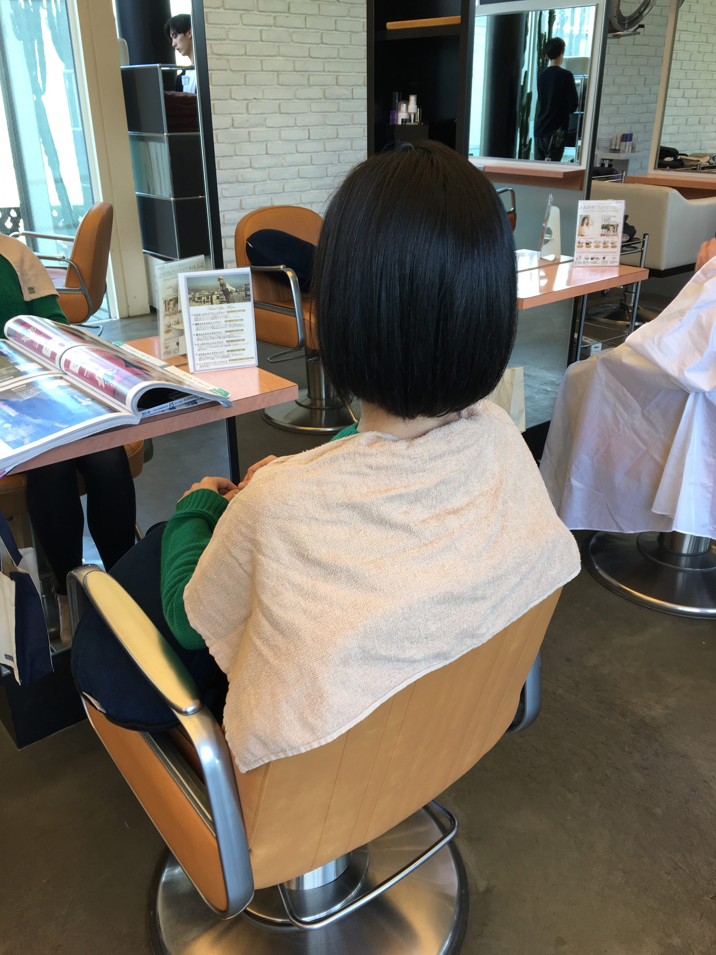 先日、短いボブから伸ばしてだいぶ長くなっていたお客様が久々にばっさりボブにしました♡