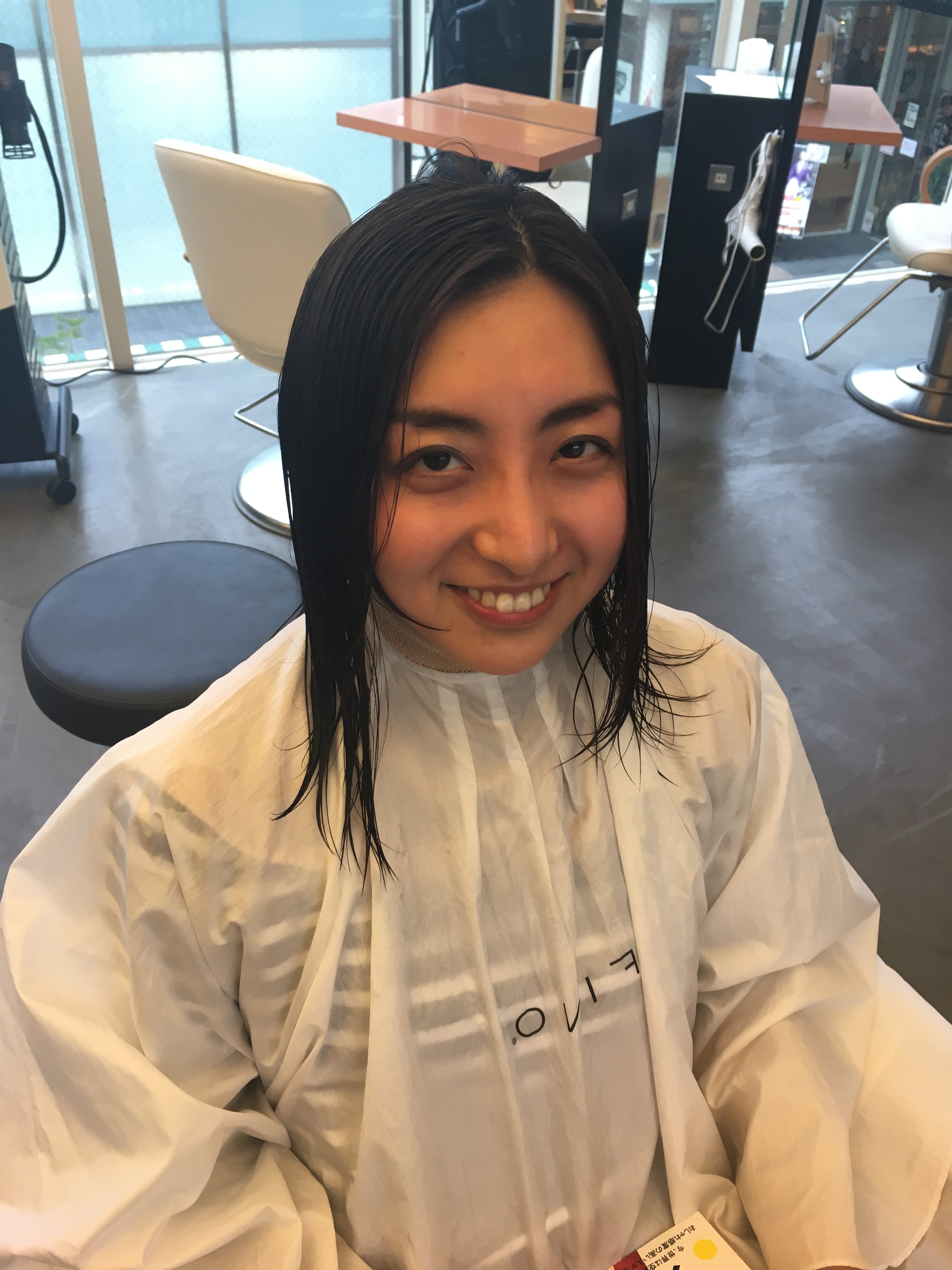 私がアシスタントの時からカットレッスンに付き合ってくれていた富田さんが、バッサリ切りたいとの事で、