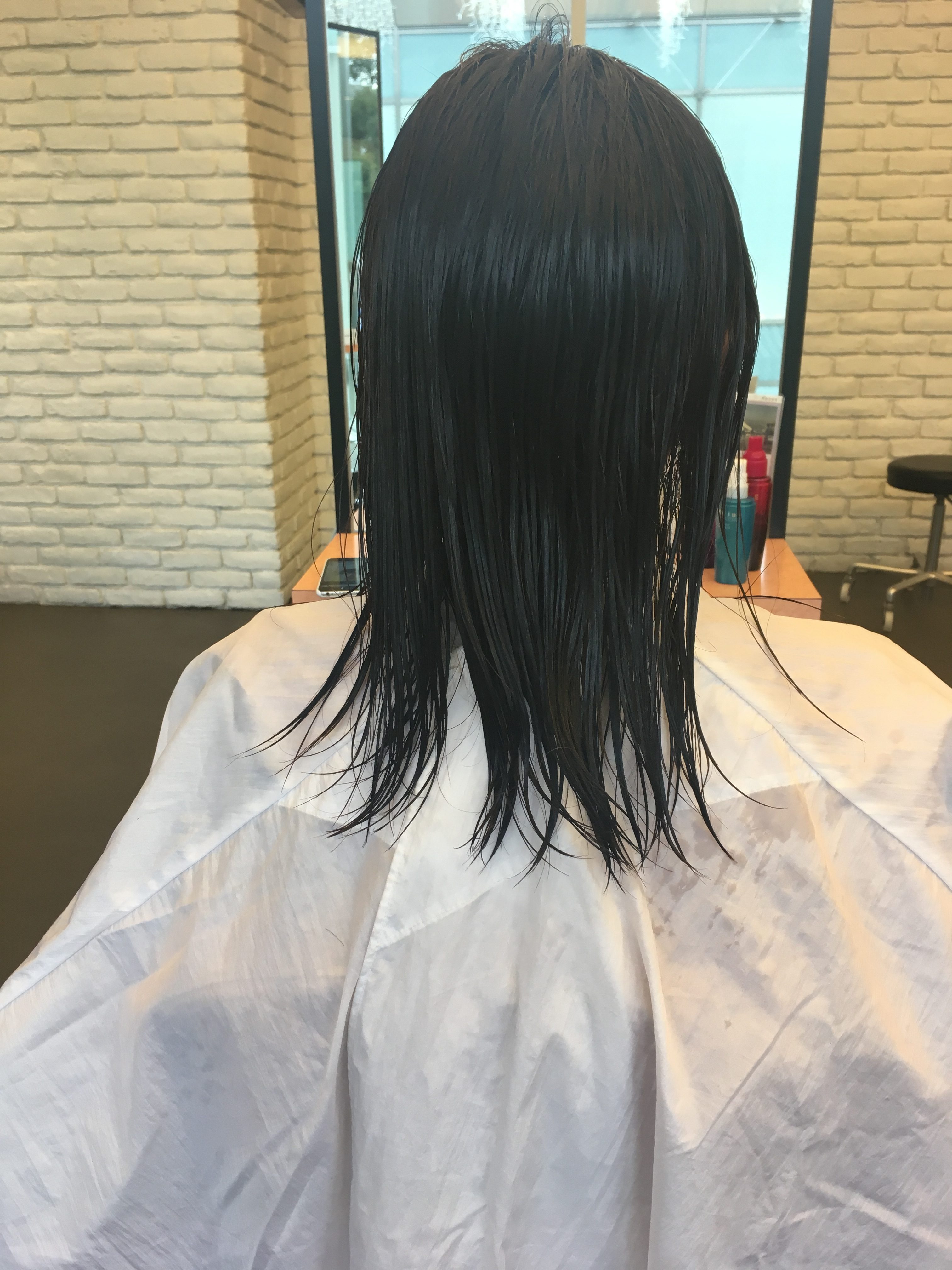 写真だとわかりずらいですが、乾くと結構、もわっとくせが出る髪質のお客様 ↓ ↓