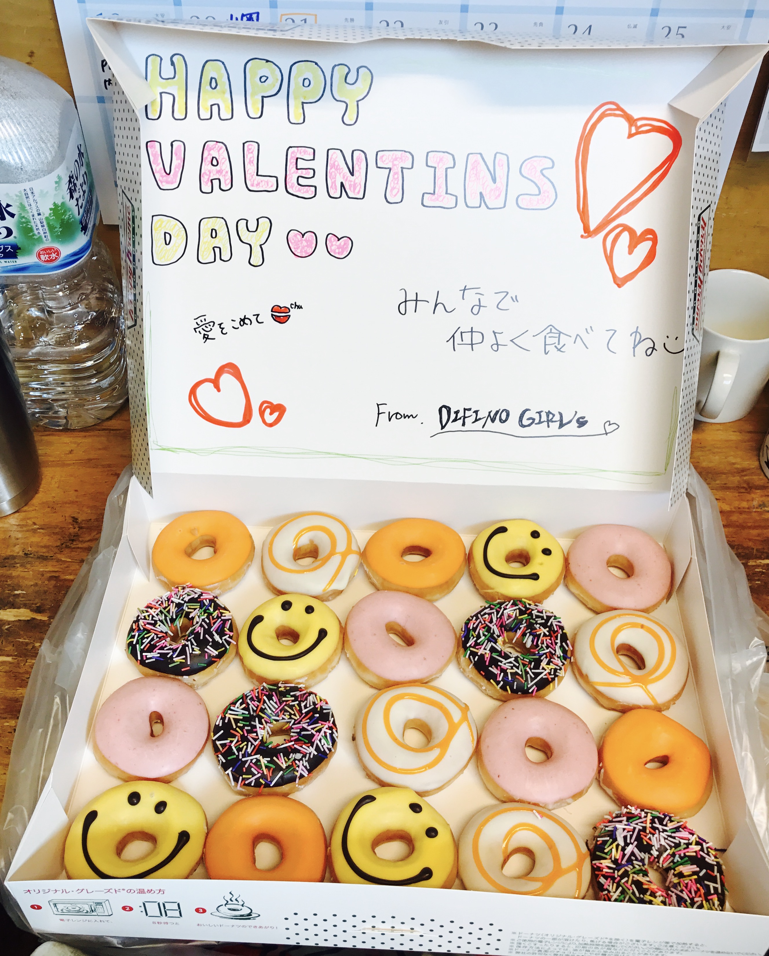 ということでDIFINO女子スタッフで男子たちにチョコドーナツ!!!
