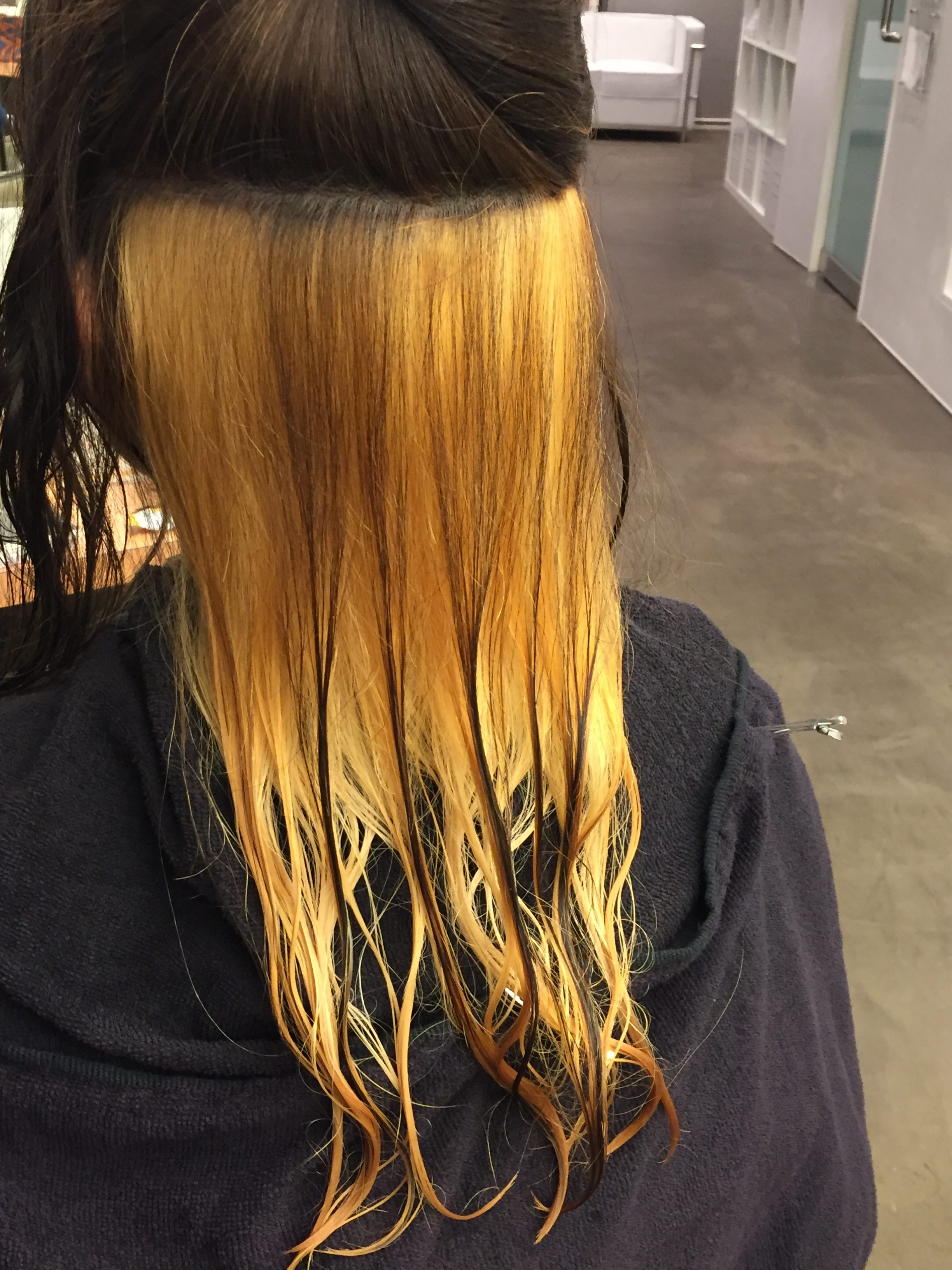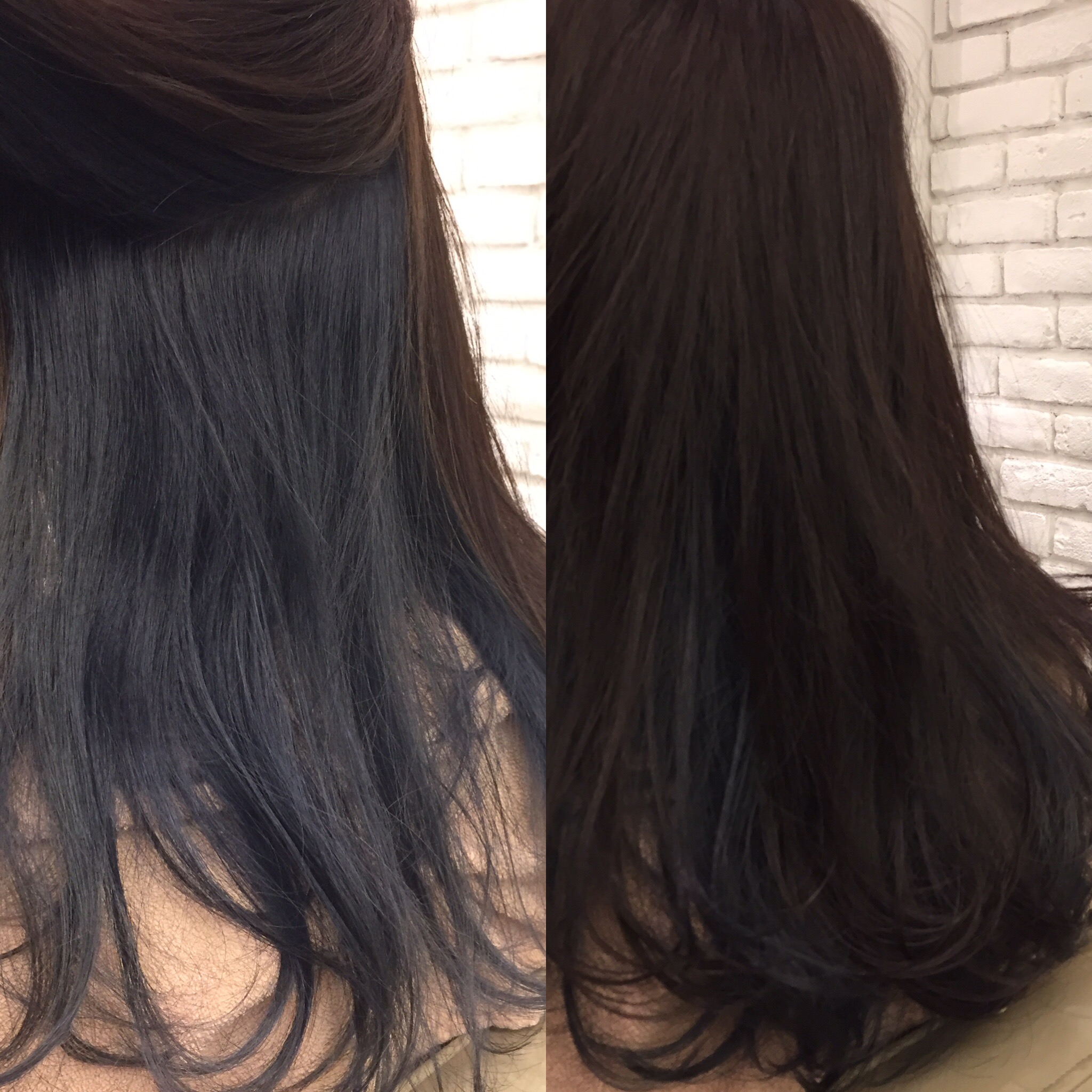 全体的に均一な色にしました!そこでお店に入った新しいカラー剤のシルバーとブルーを少し混ぜて、、