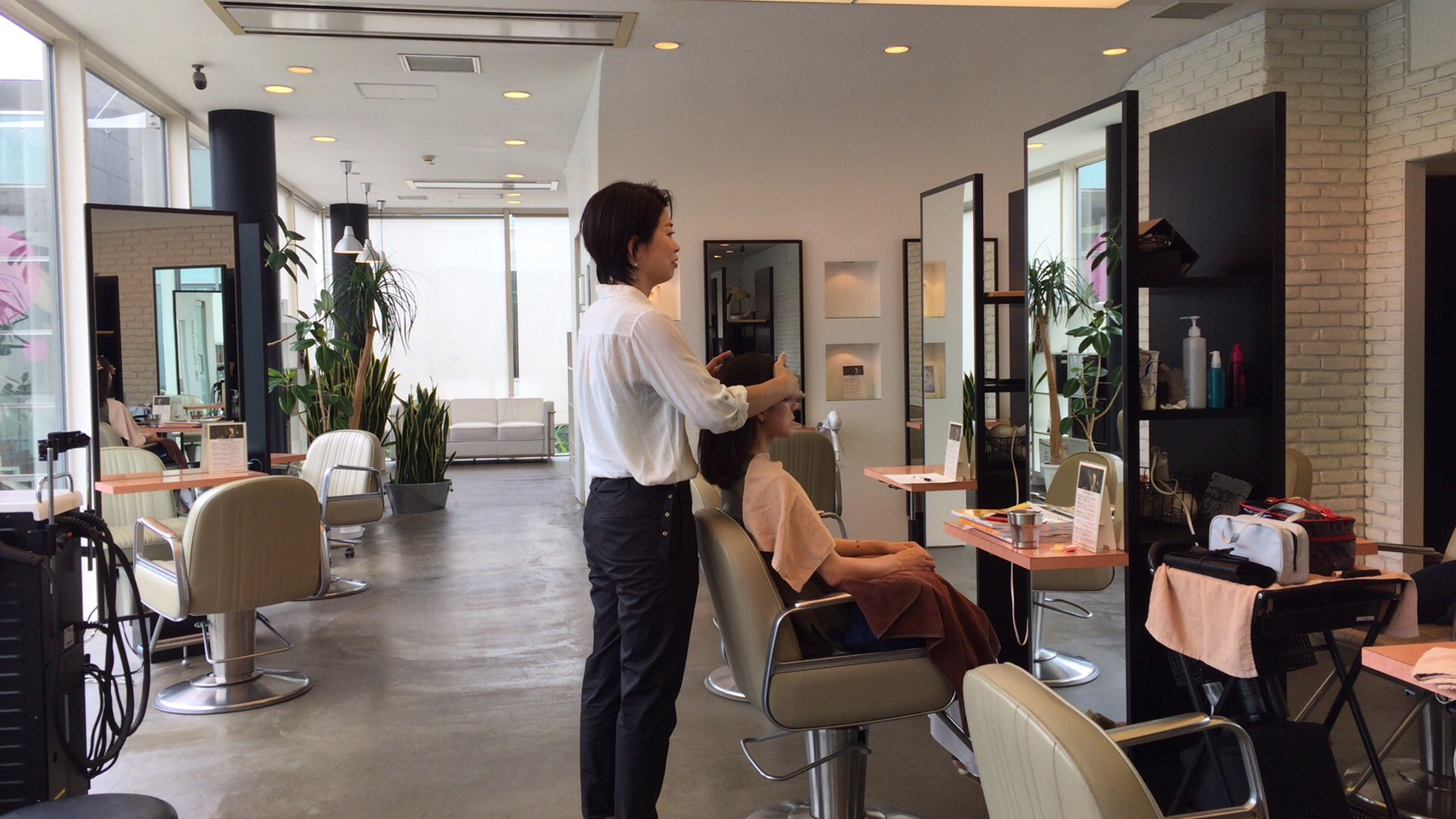 お店が休みの日だったので、貸切でヘアメイクの仕込み☆ 気持ちのいい朝(^_-)-☆
