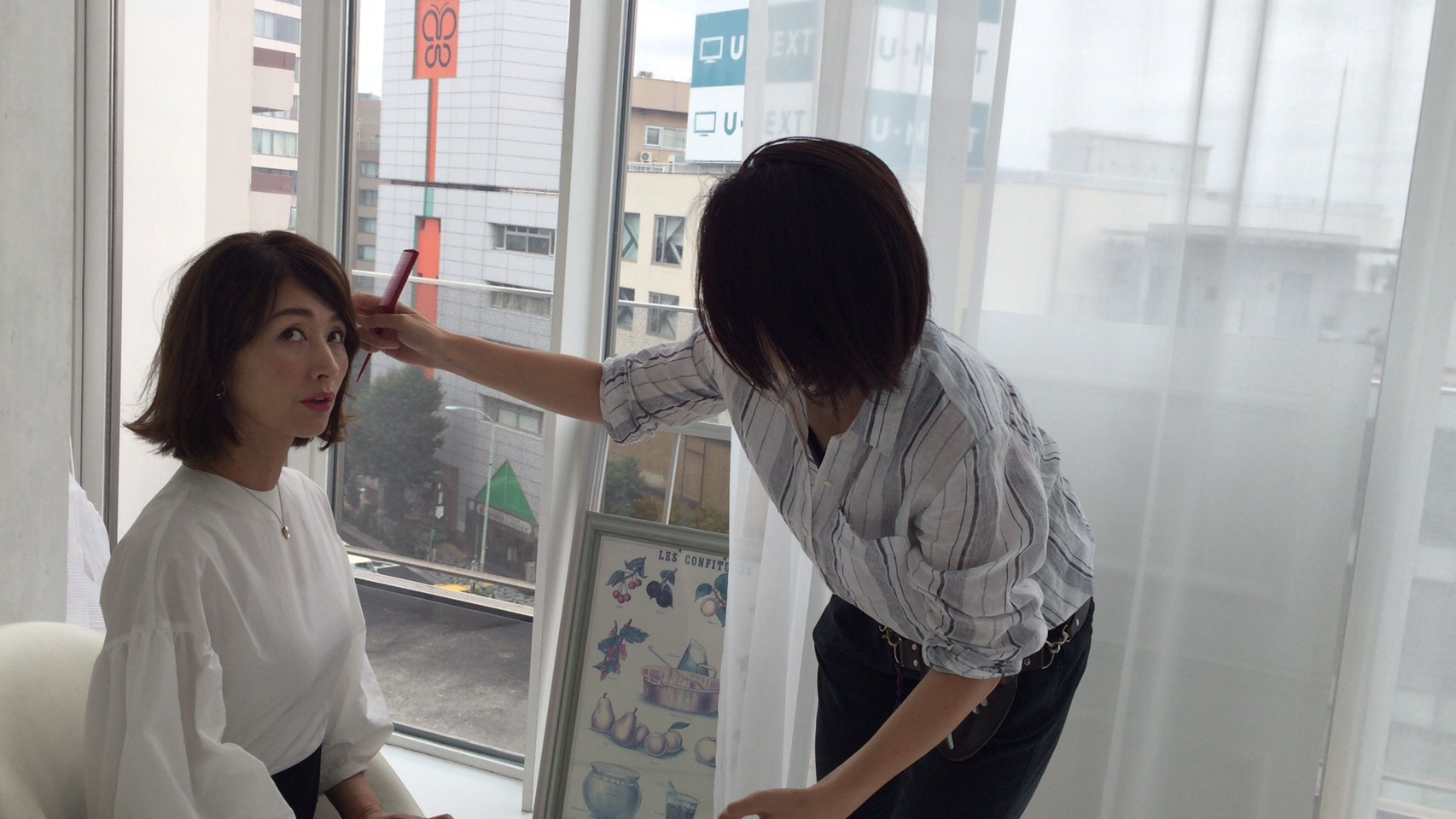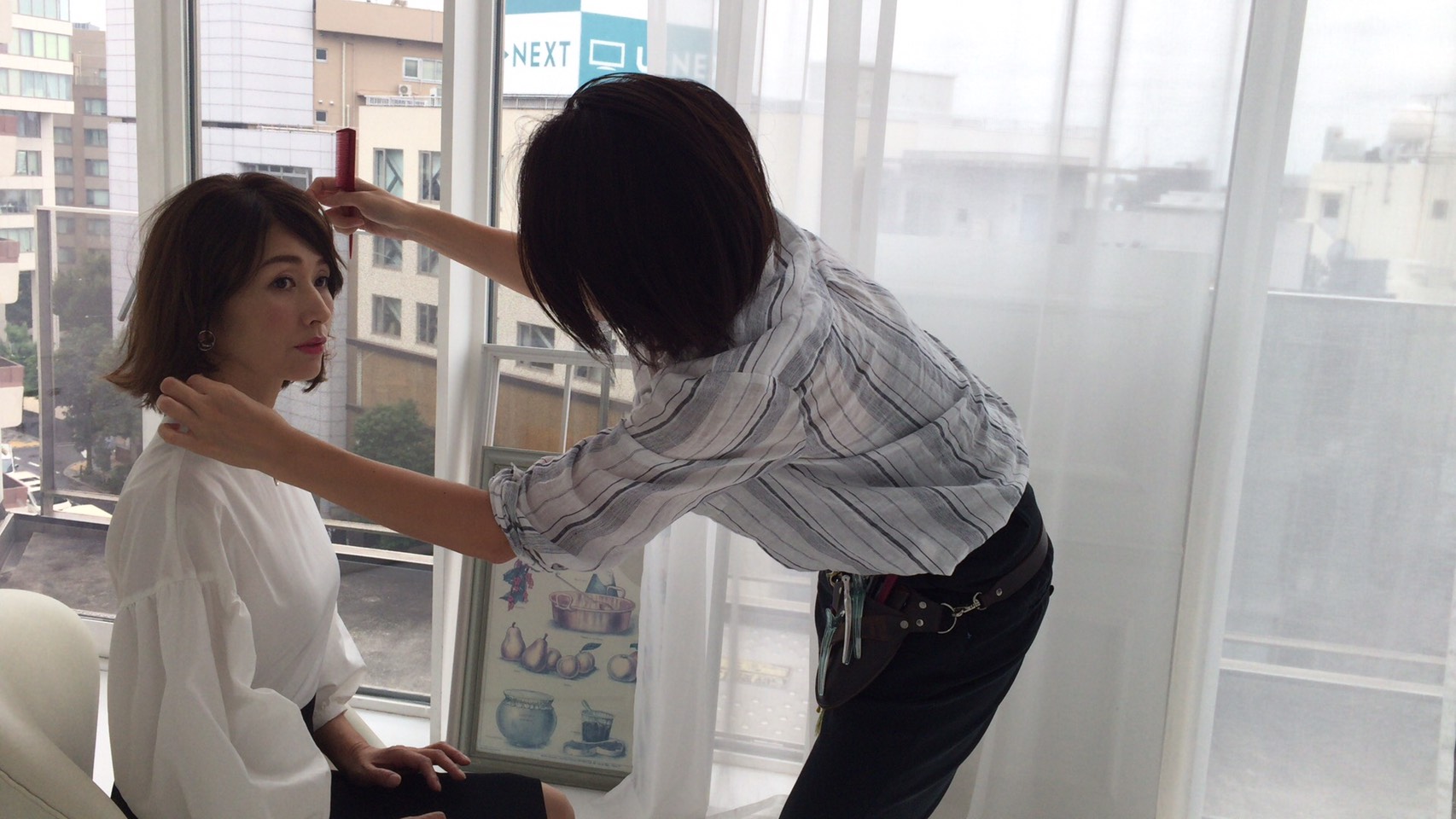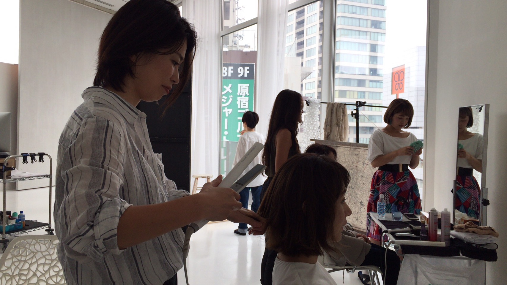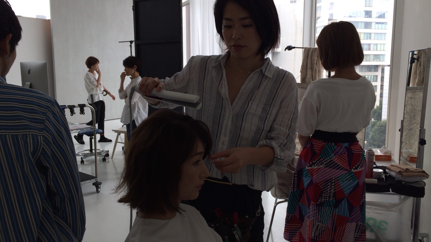 前もってモデルさんのカットやカラーの仕込みはしていたので当日の朝メイクさんにメイクをしてもらい、