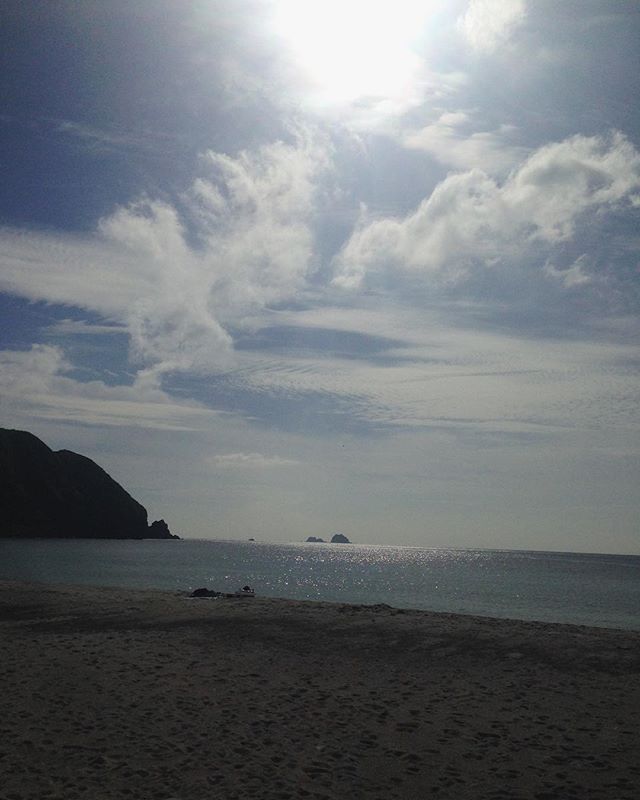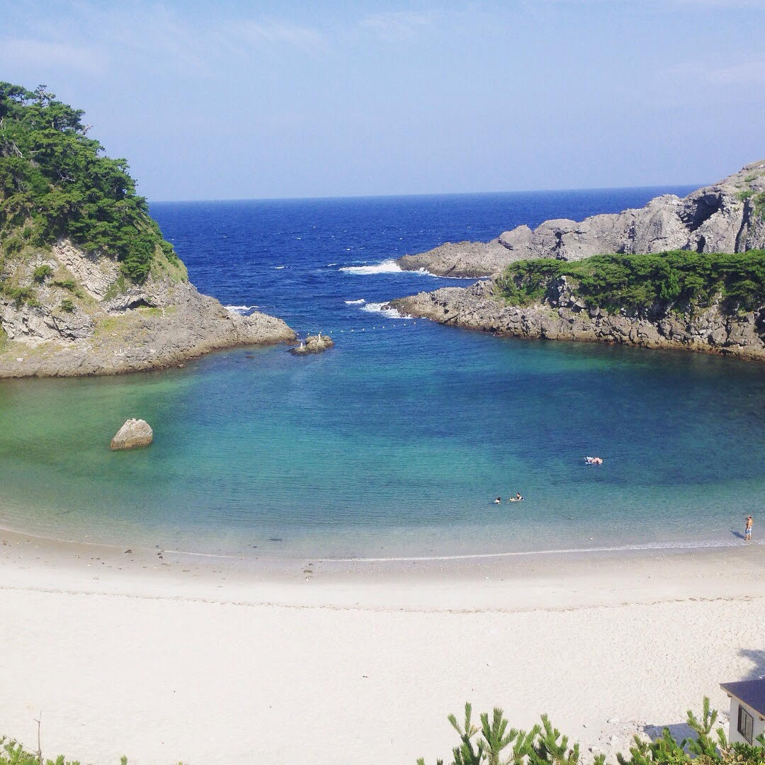 前浜海水浴場。白い砂浜がずっと続いてます。ここで静かに昼寝。気付いたら夕方でした。