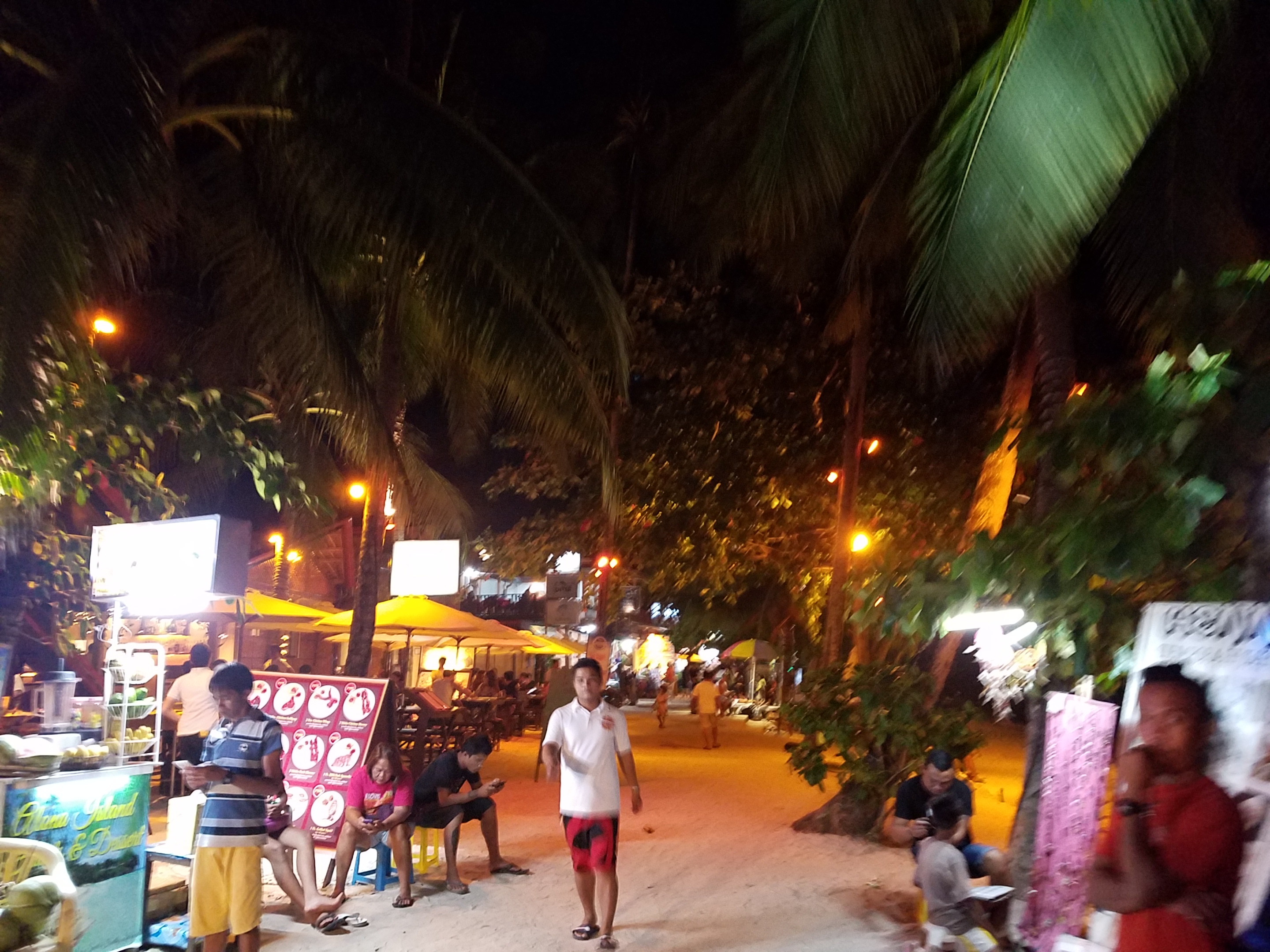 夜ご飯を食べるときはビーチ沿いにオープンテラスのレストランが何キロにも渡って建っていて(1キロくらい?)