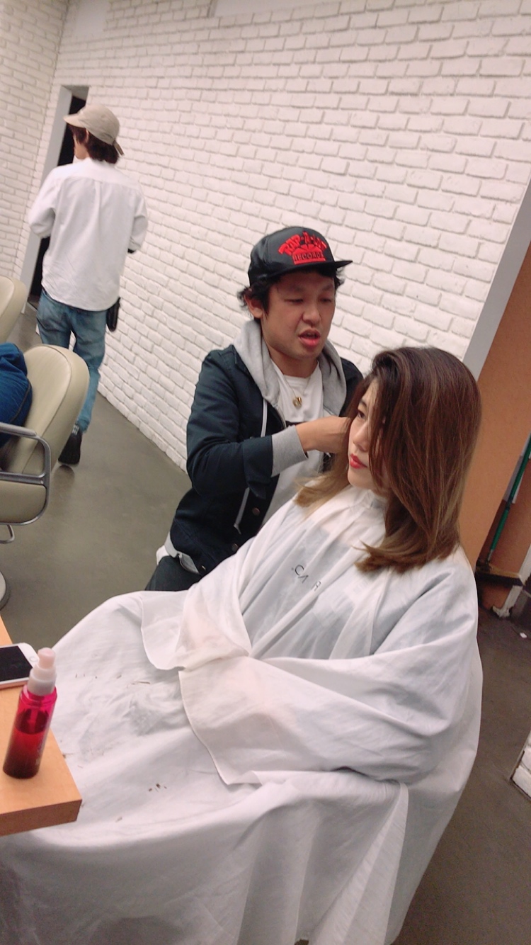 月曜日は夜の時間帯が余裕があったので店長の佐野がアシスタントの北条のカットをしてました(^ ^)