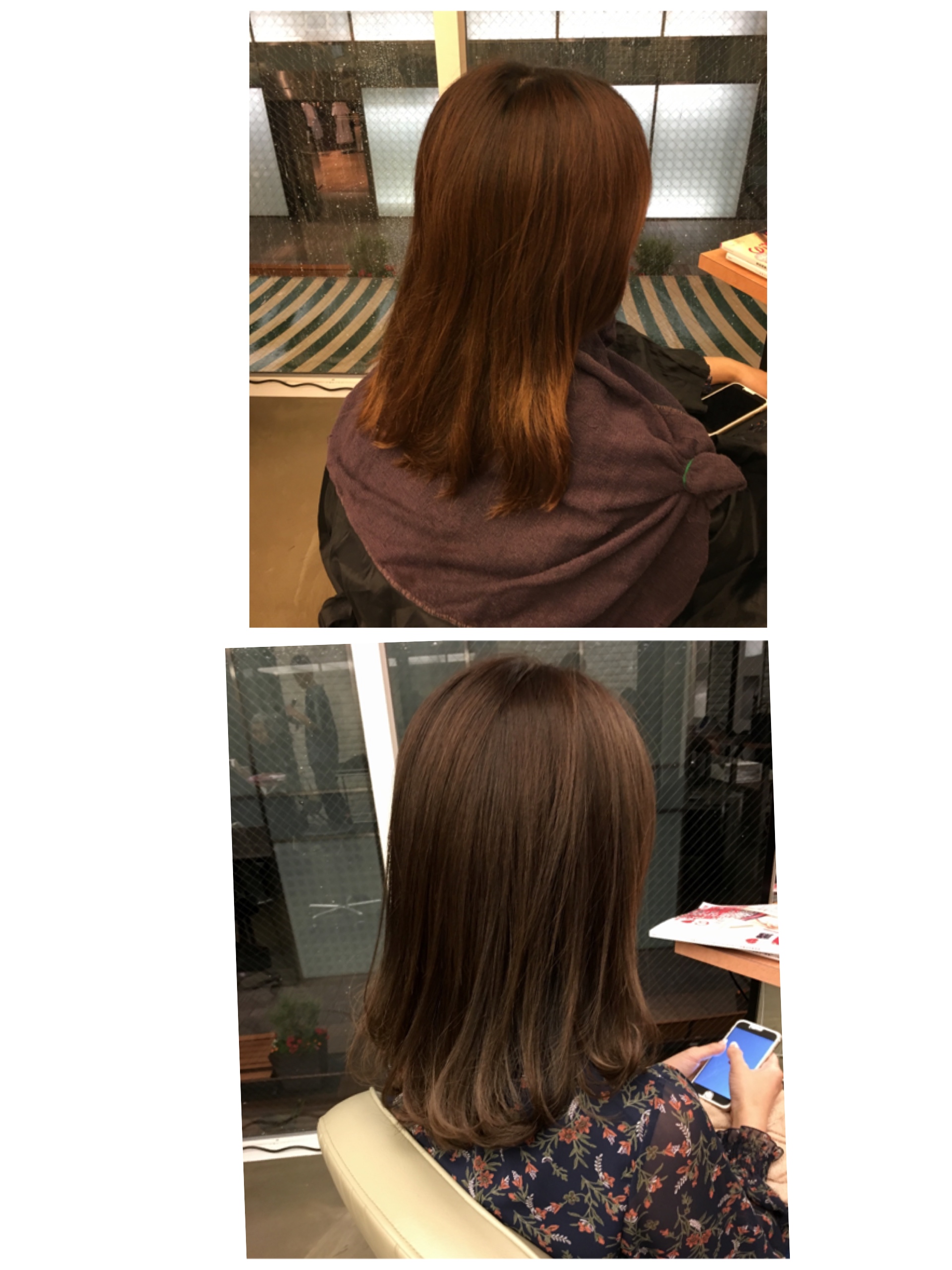 オレンジぽく抜けて毛先は黄色ぽく抜けてます。