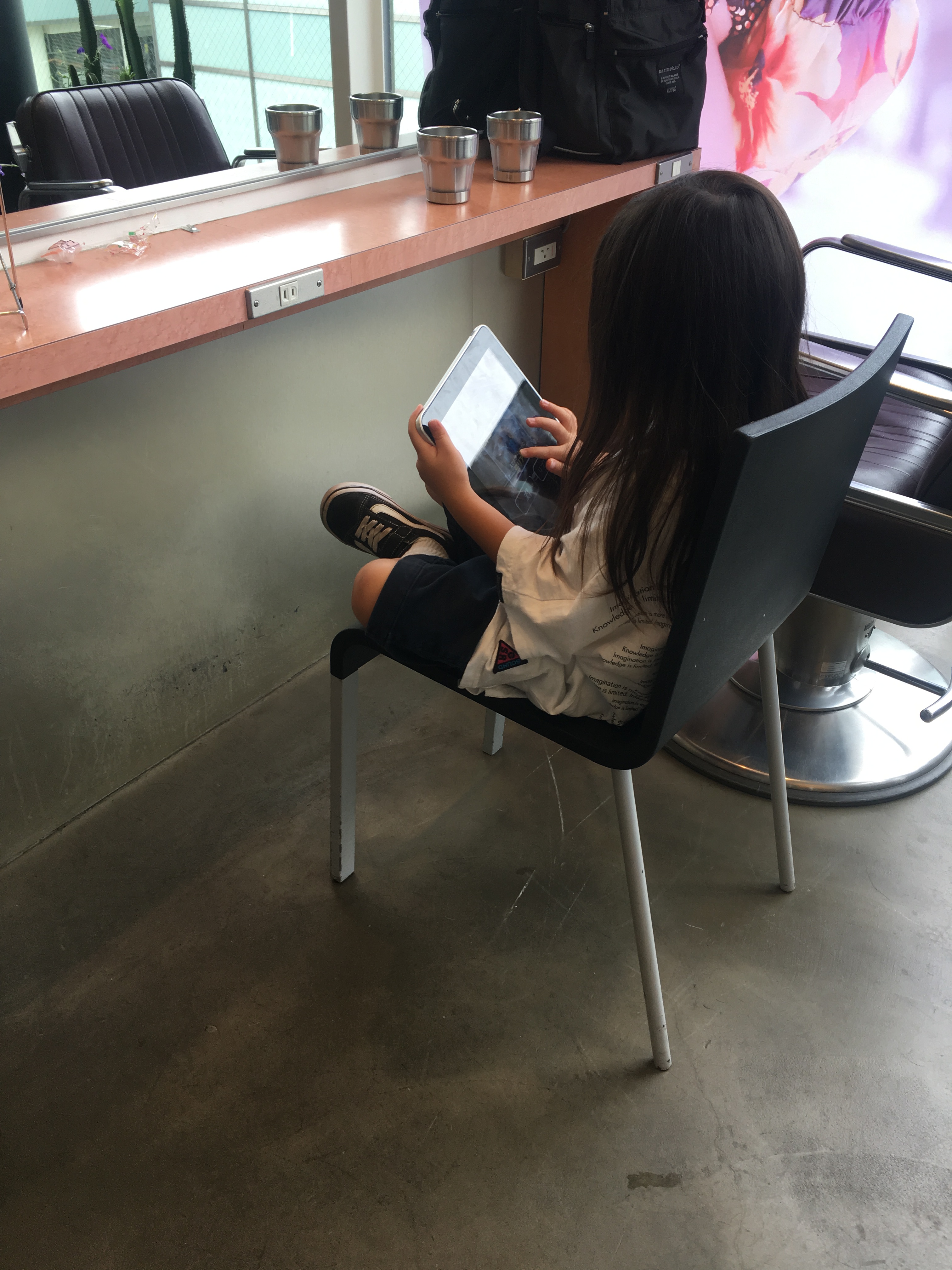 ママがカットしている時間は仲良く動画を見ていましたよ^ ^