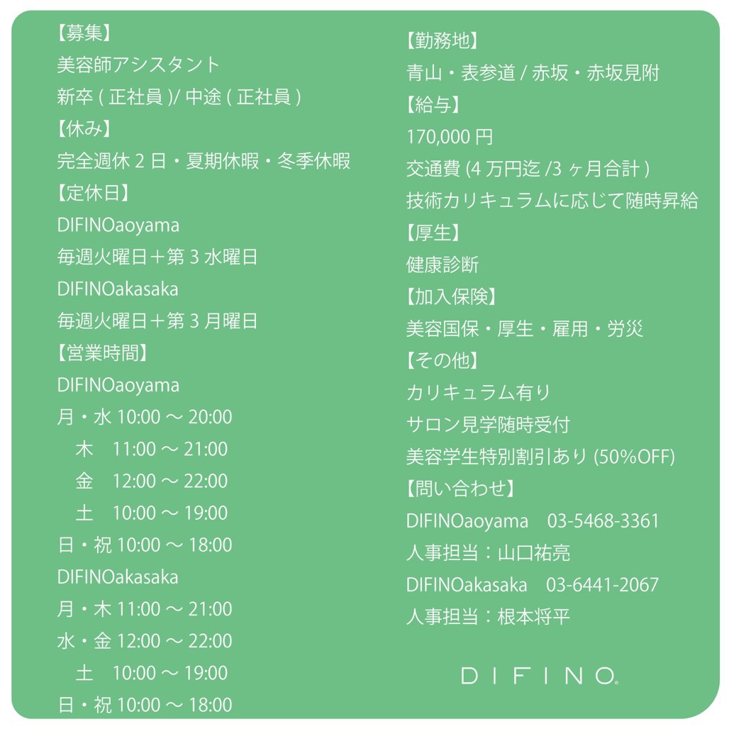 DIFINO aoyama 人事担当 山口 宛 【面接日程】