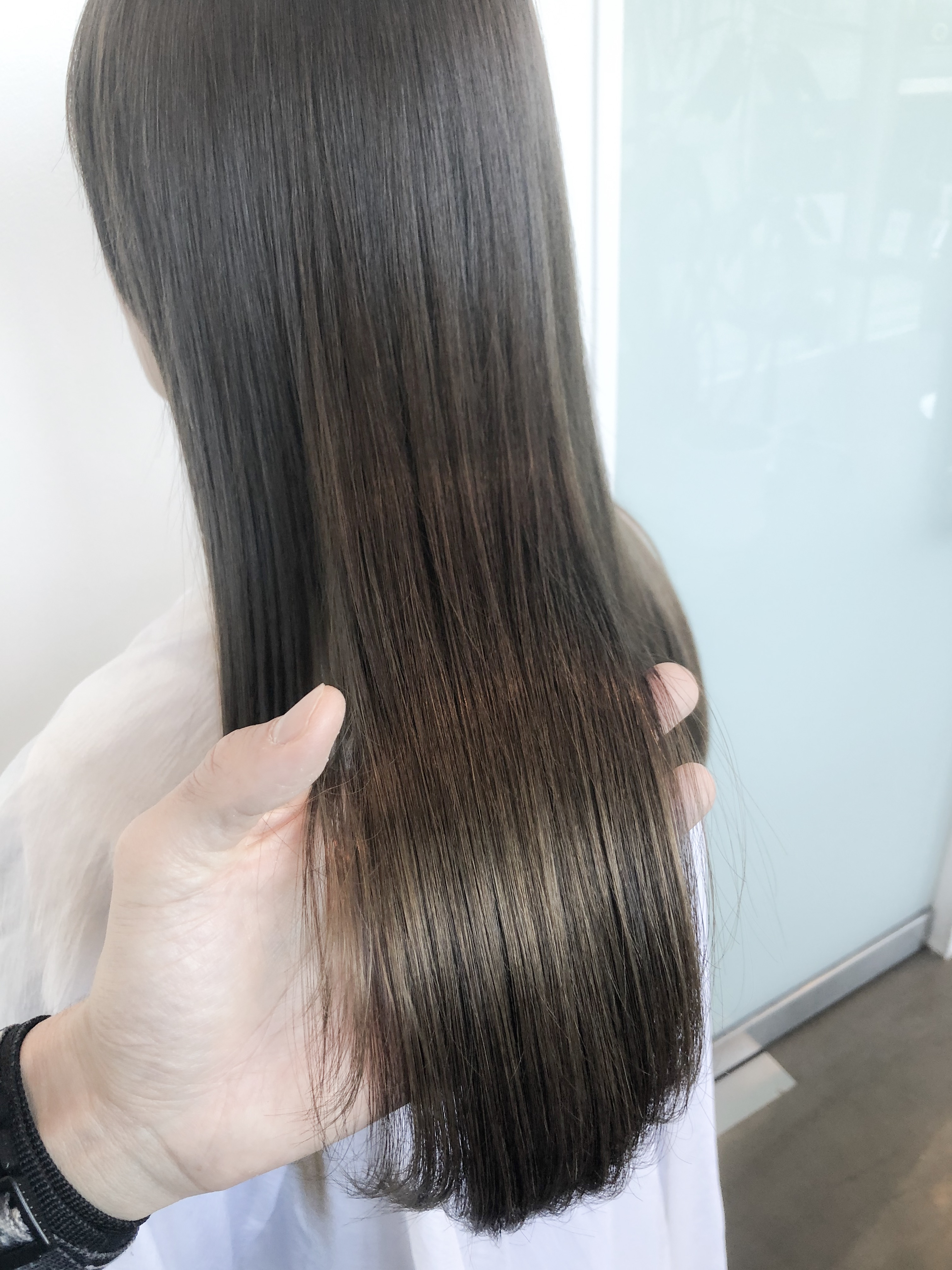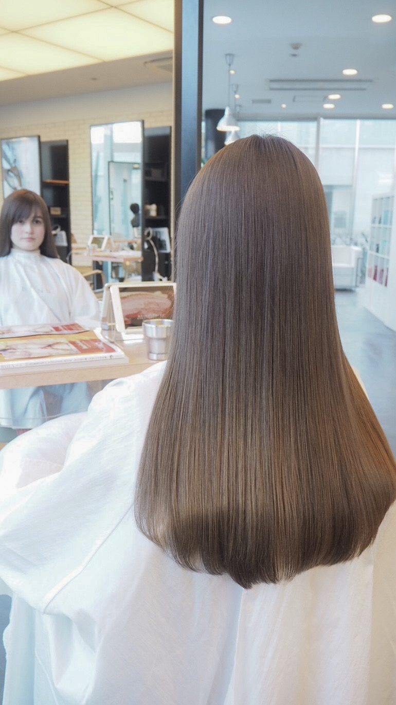 特に毛先の部分で特に乾燥が気になる部分へ2剤のW塗布!がこの時期ならではの工夫です!