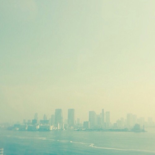 朝はちょっと霧がかかったような東京の摩天楼。