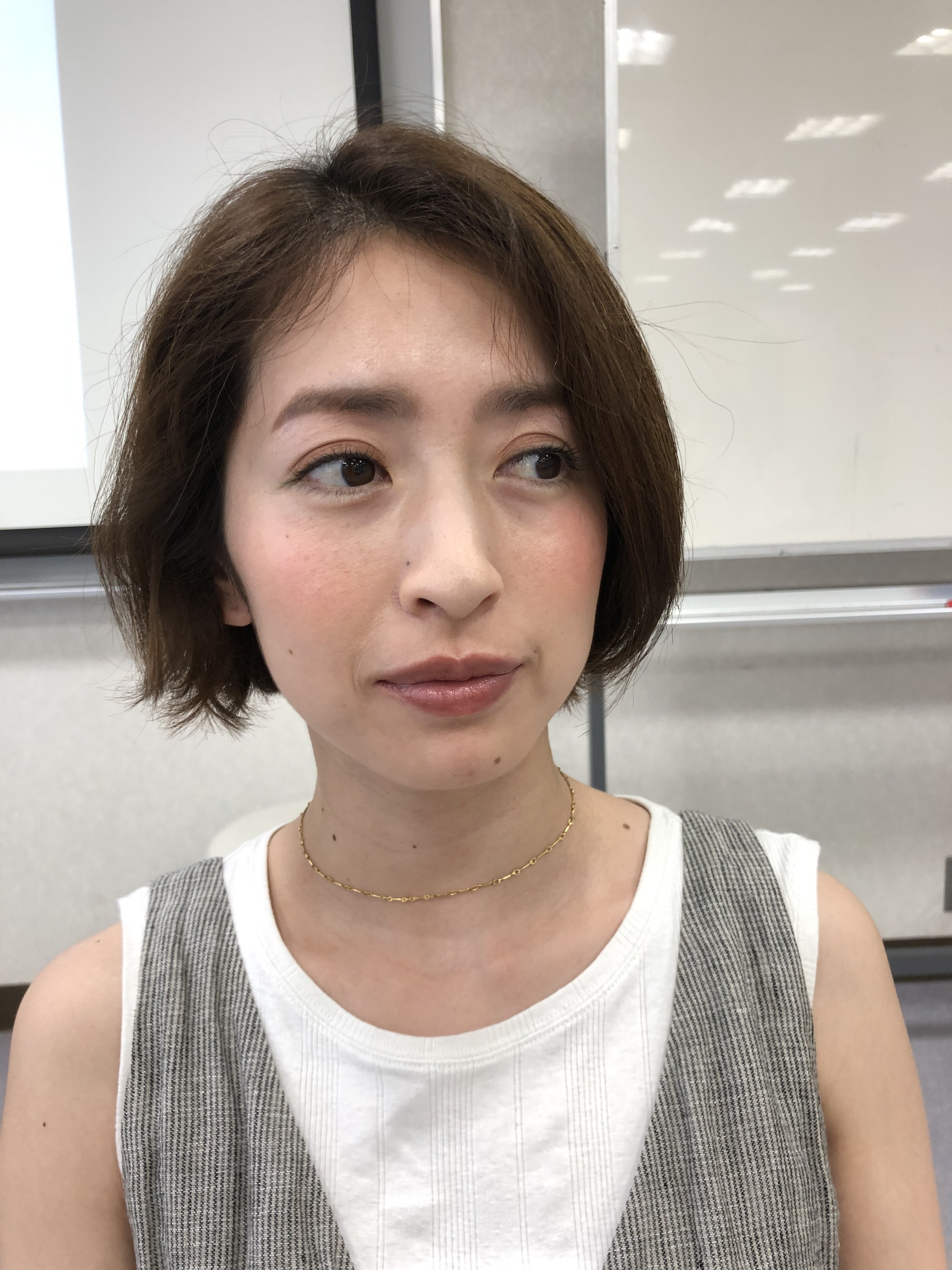 ハサミの入れ方と、髪のスキ方で、ヘアスタイルもキレイに見えるし襟足が逆さに生えている逆襟の人でもこんなスタイルを楽しむこともできます。