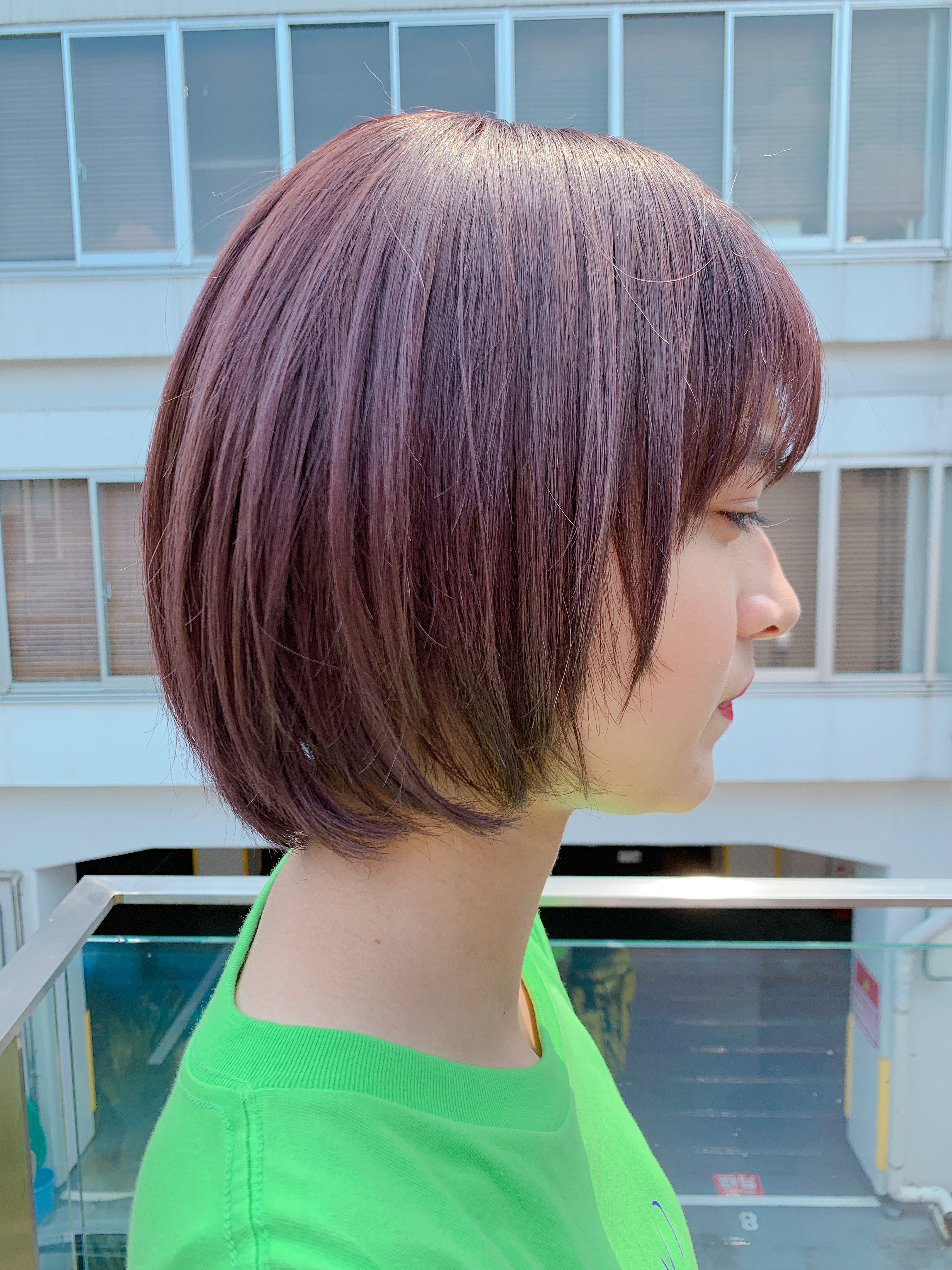 それがキレイにベージュに退色してくれていたので今回は流行りのパープル系を提案すると、、