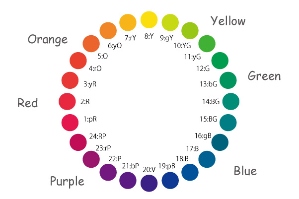 逆に黄色味が嫌な人は補色の【円の反対色】紫をいれたら色が消せるという事です(^^♪