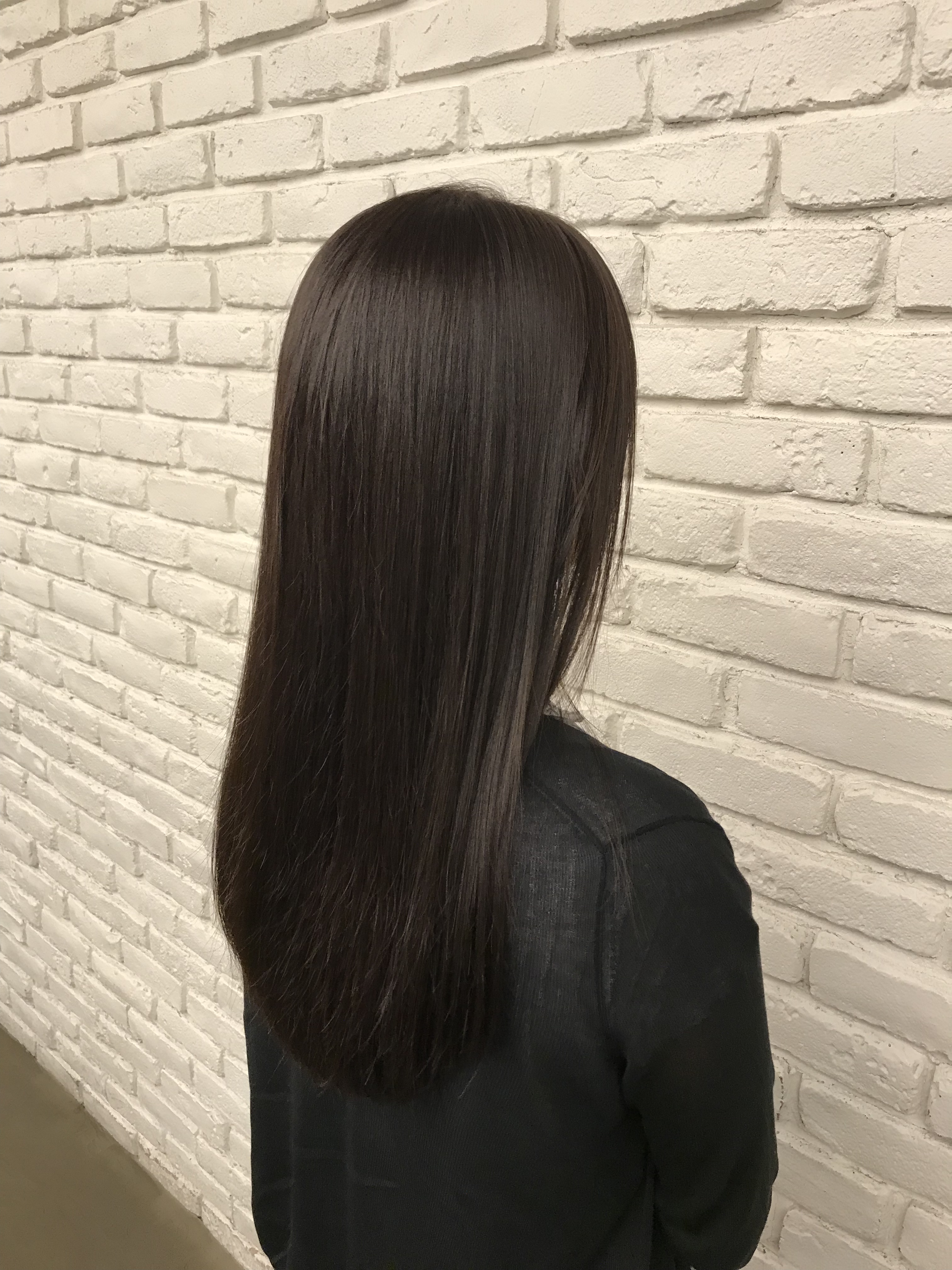 今週のカラーモデルさんは髪色お任せで、暗くしたいというオーダーだったので、暗いトーンにベーシックなブラウン系のカラーに仕上げました!
