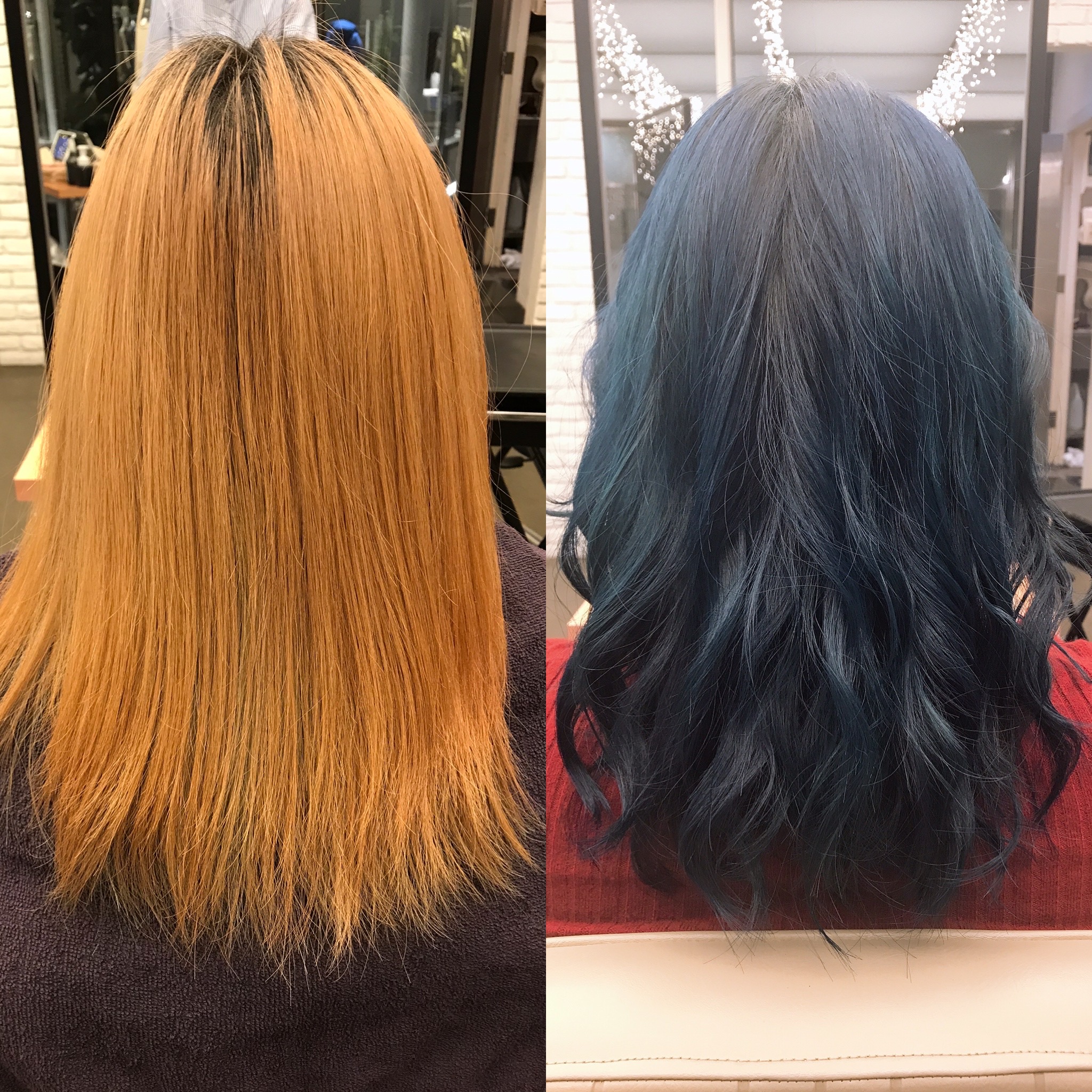 前にピンクにカラーしてあげた友達が今度はブルーにしたいと連絡をくれたので営業終了後にカラーをしました!