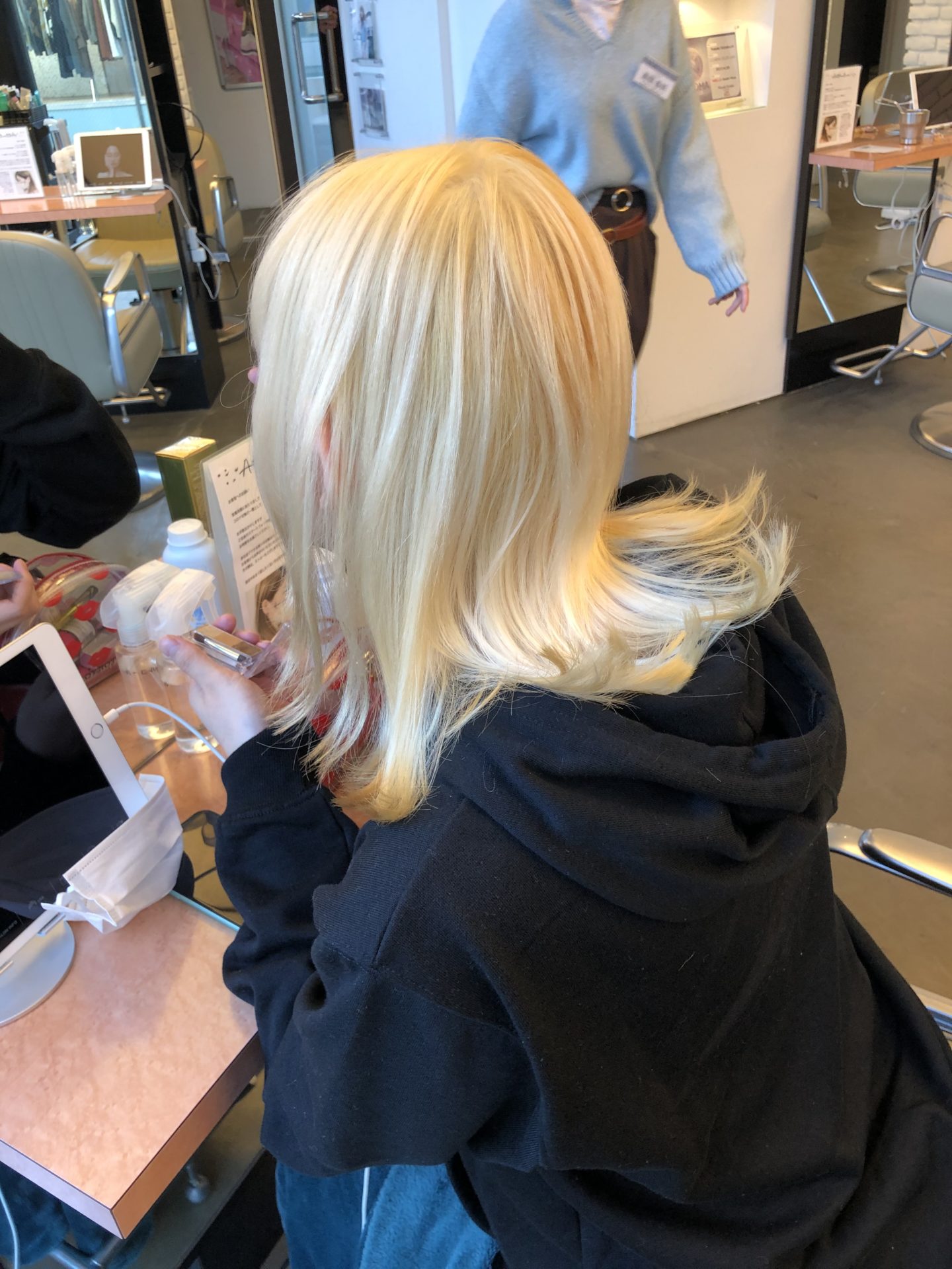 今回セルフカラーをしてしまったモデル様がきてくださってブロンドにしてほしいとのオーダーが!!!