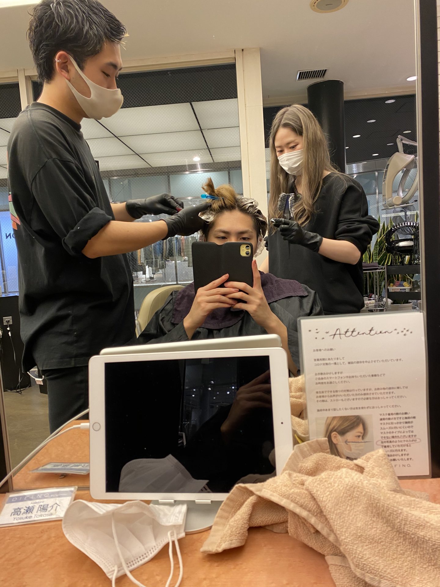 今日は営業後に後輩に染めてもらいました😁
