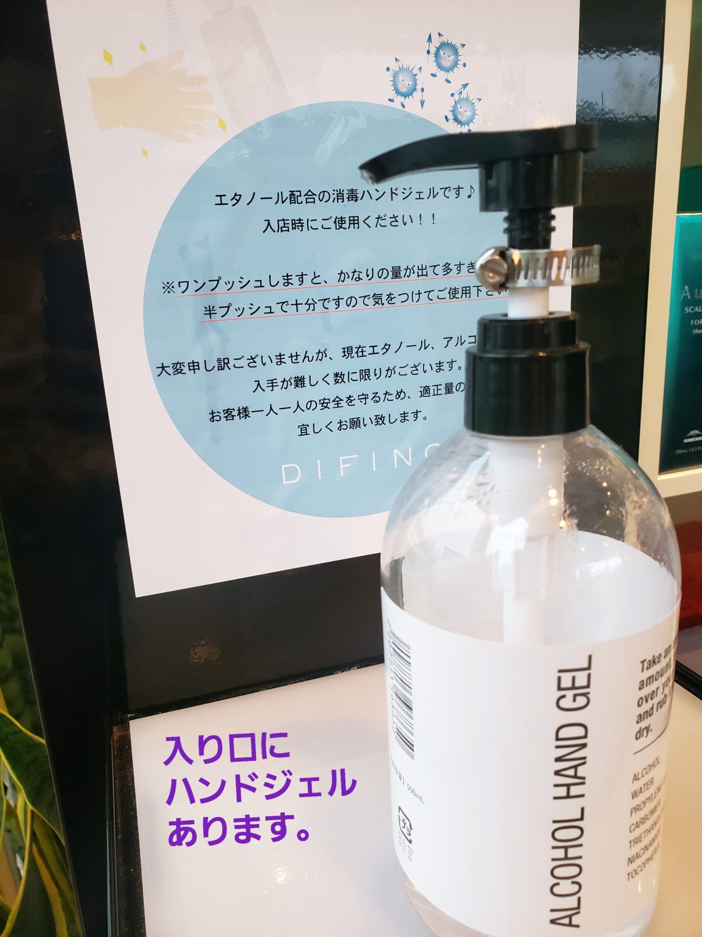 まずレセプションにてアルコール消毒のご協力をお願いしております。
