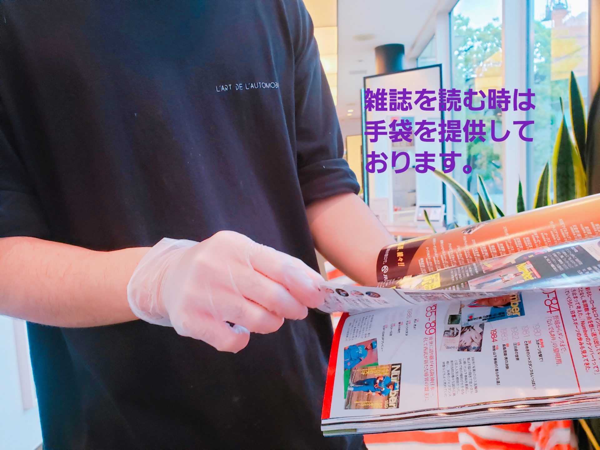 こちらもお渡ししたビニール手袋をして頂いております。