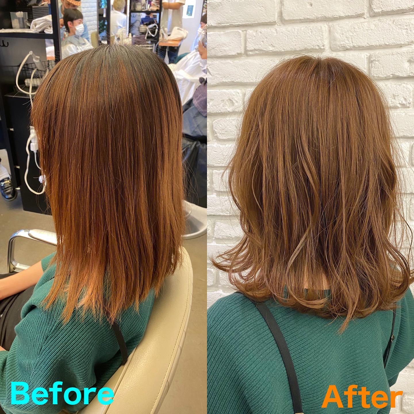 根本の方がだいぶ暗くなっていたので、全体的に色を合わせるのが難しかったのですが、今まで教えていただいたことを思い出してカラー剤から塗り方まで自分で考えながらカラーができたので良かったです!