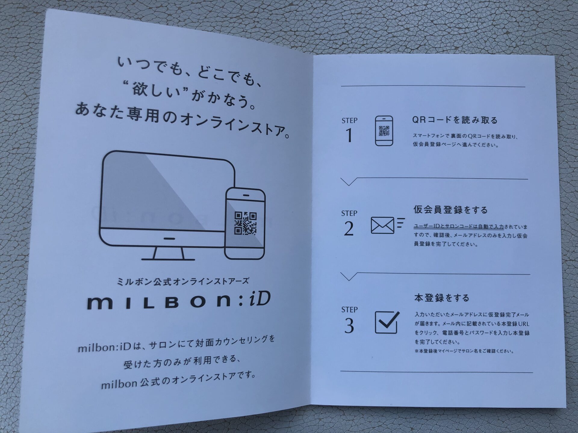 ②milbon IDに登録していただきます。