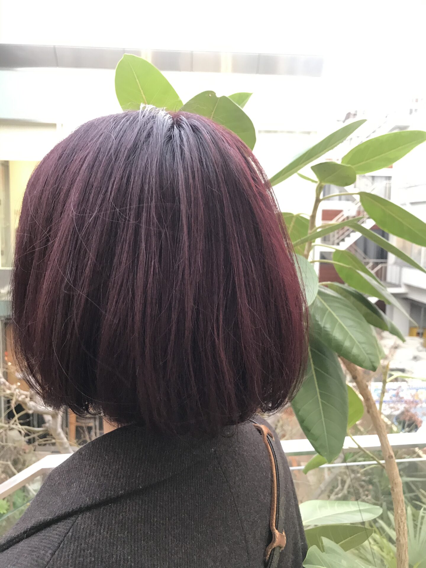 最初から赤系のカラーをしたい!との事だったので赤系のカラーで染めるのは3回目でかなり色もいい感じに出できます!