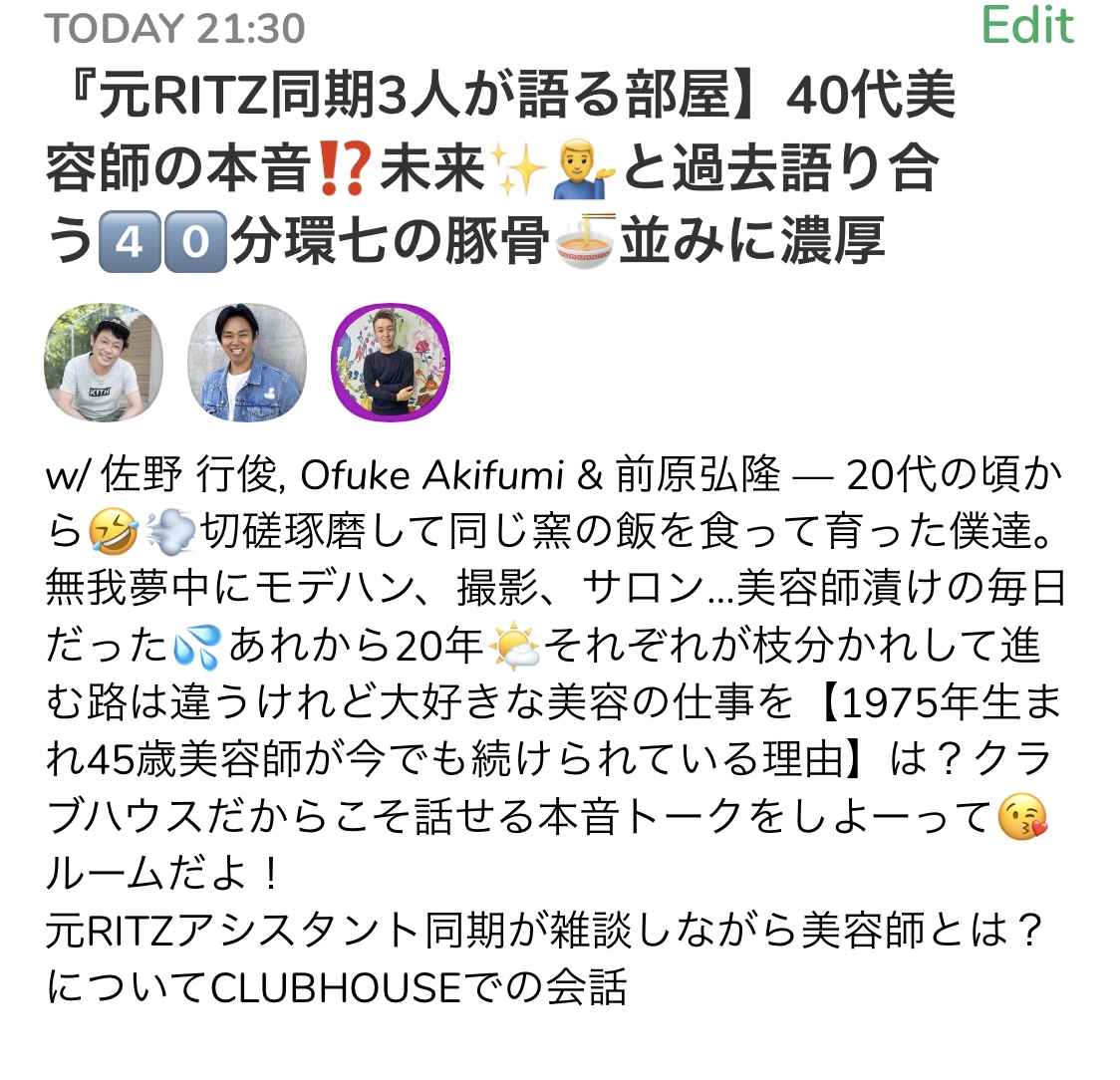 そんな話はさておき、そーそー話題になっている【Clubhouse】をやってみました。