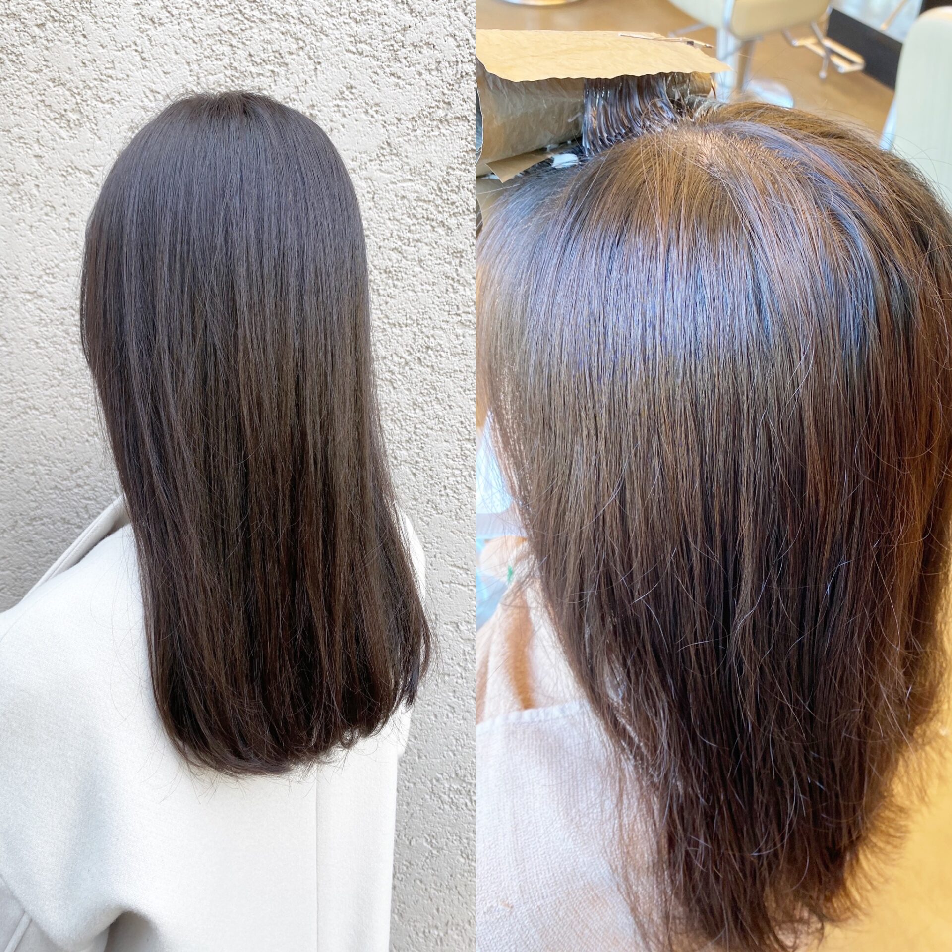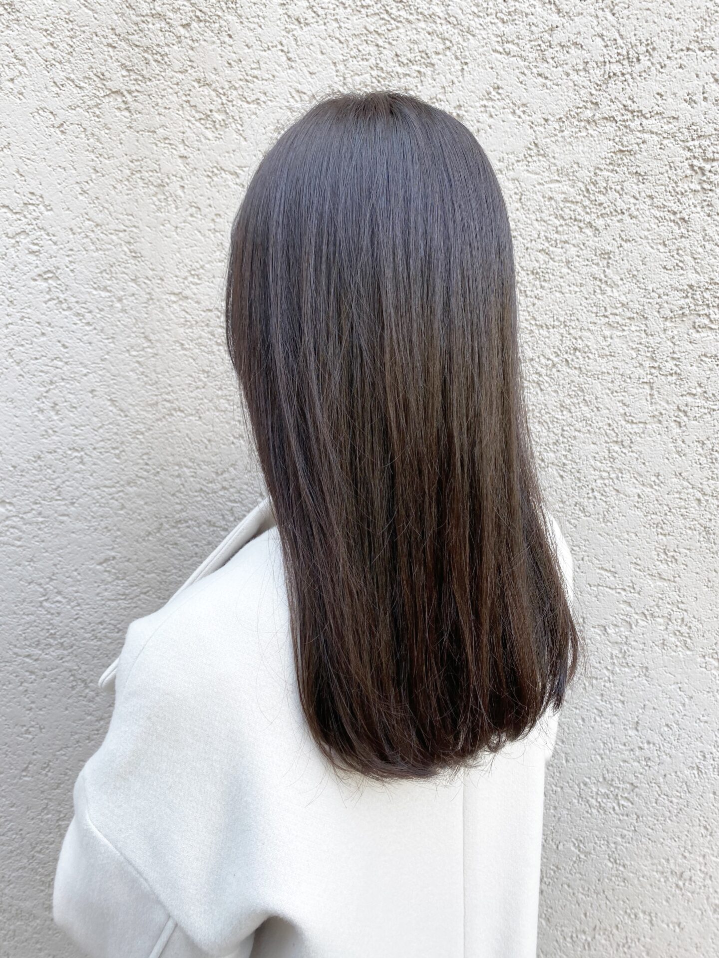 前撮りは明るすぎず、暗すぎない無難な色でいきたいとのことだったので、今回は色落ちしてきても艶が出るブラウンカラーをやらせていただきました!