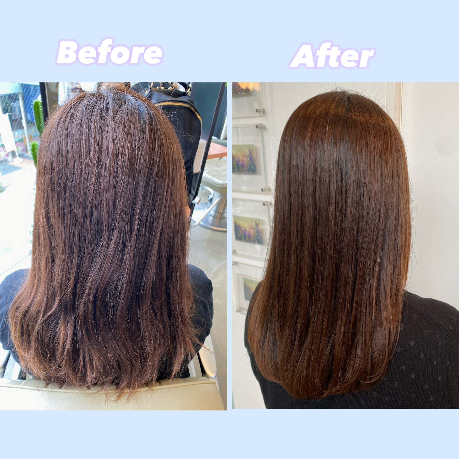 ストレートパーマは工程が多いため施術時間を少し多めに頂いてしまいますが、1度かければ朝が楽になりますよ♡