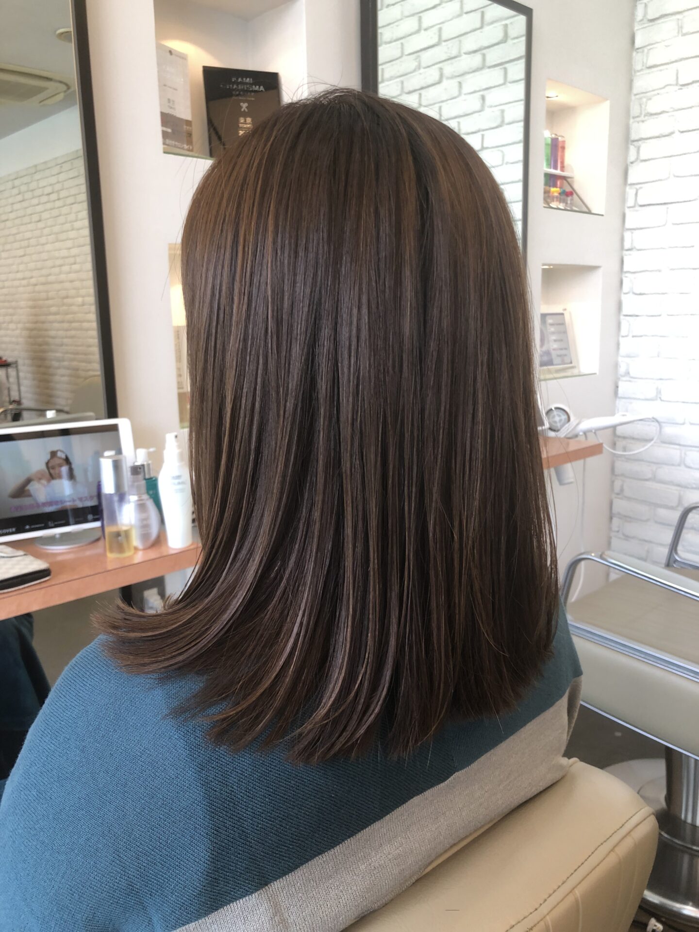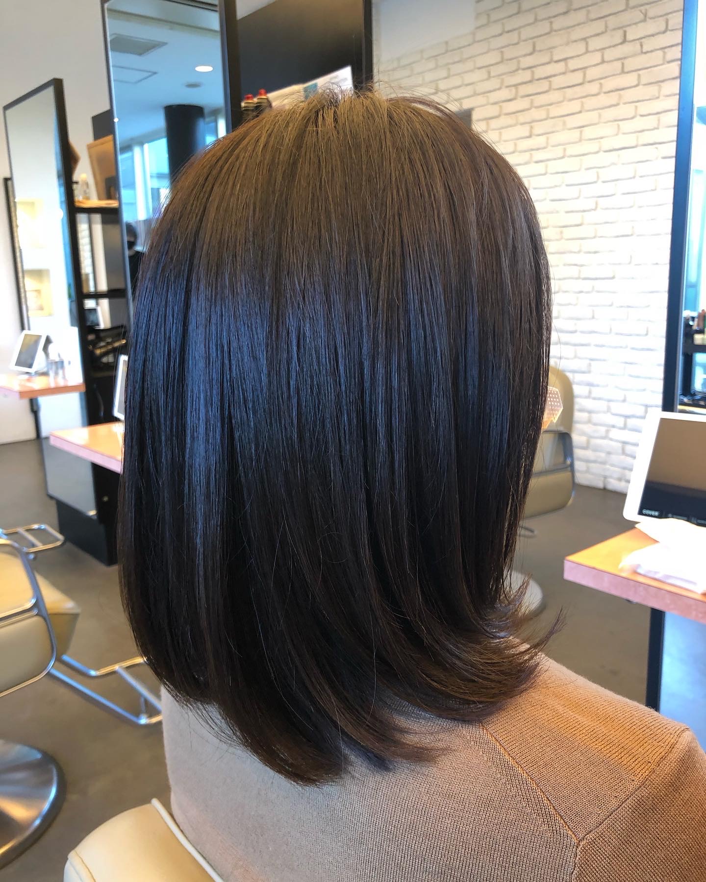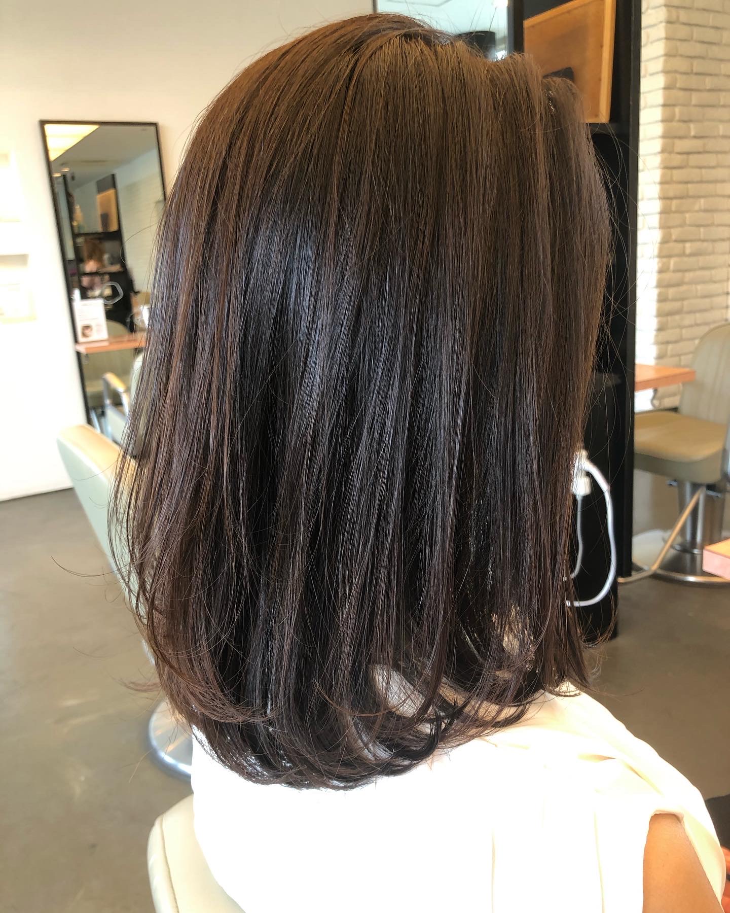 忙しいママさんはダンをあまりいれづに重ためミディアムにする事で下してもまとまる縛れる長さのヘアスタイルにしてみました。。。