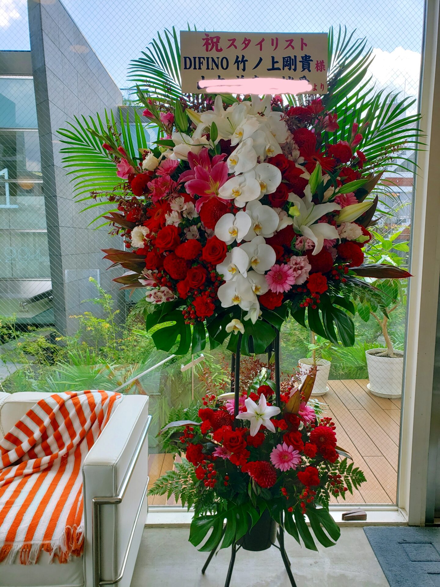 このお花はアシスタントだったスタッフの竹ノ上くんのスタイリストデビューのお祝いとして、