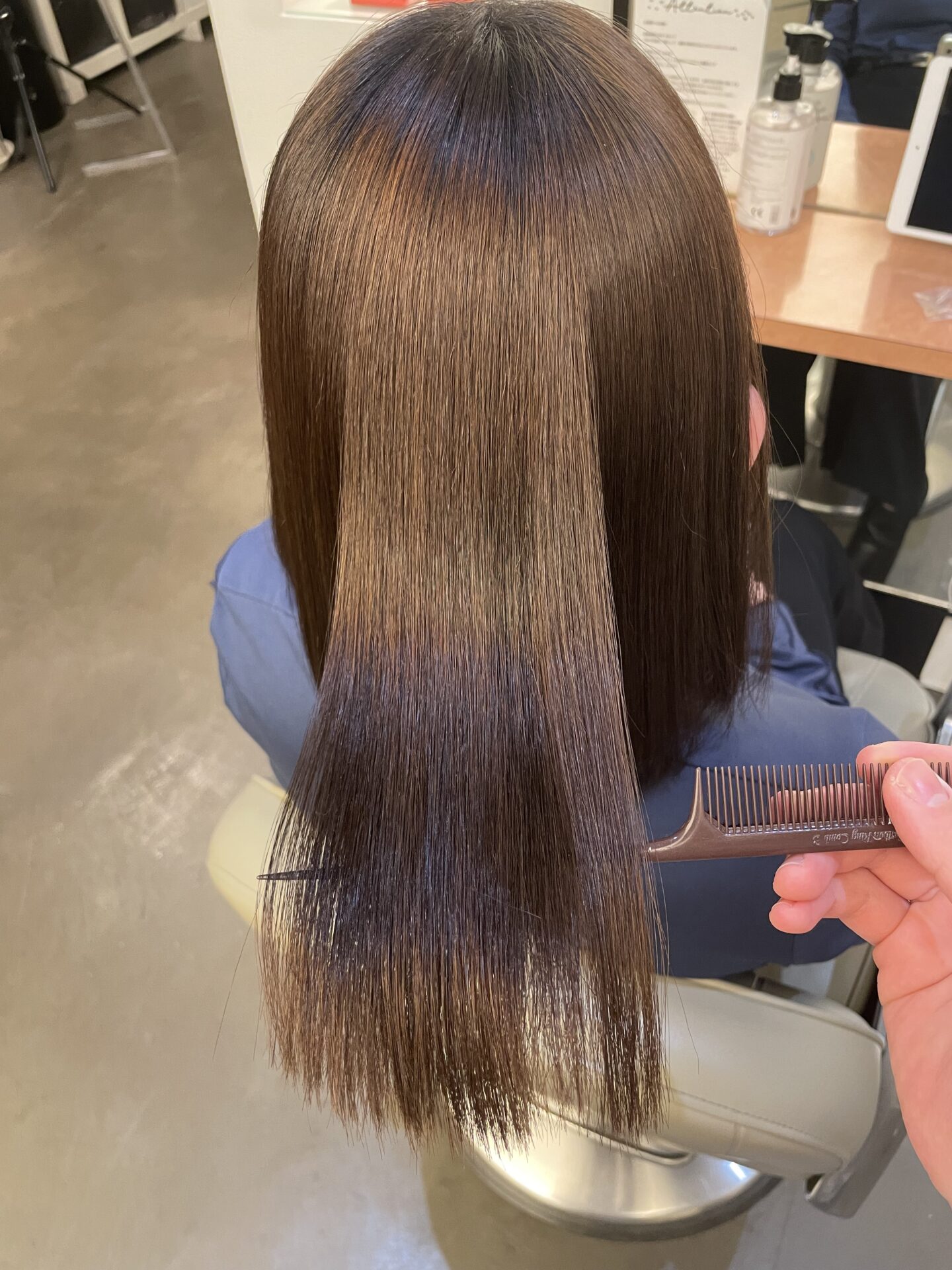 丸みのあるようにアイロンを入れ、一人一人に合わせた薬を選定し、ダメージをできるだけ少なくしたストレートがコスメクリームストレートになります!