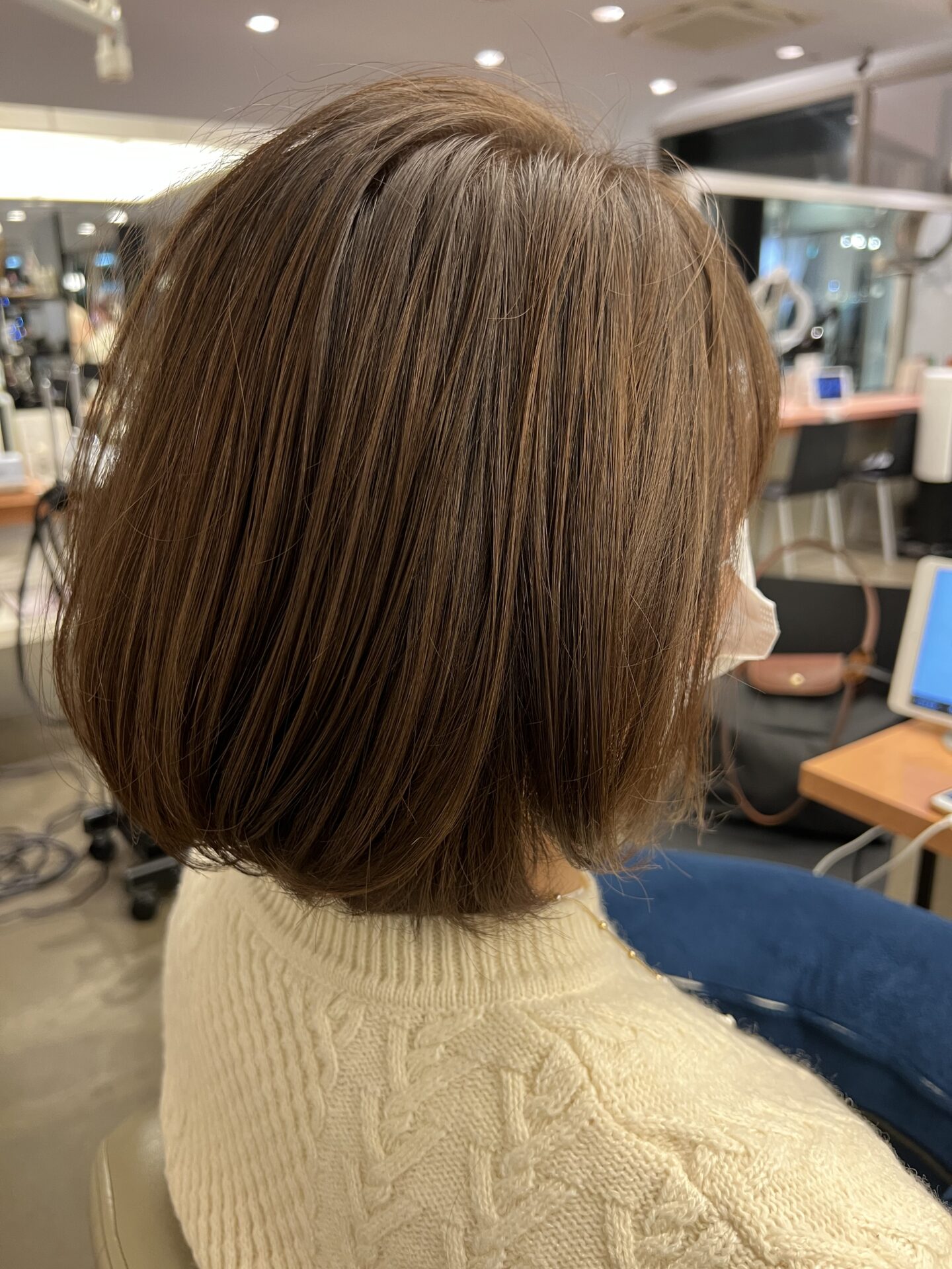冬なので洋服がコートなど着ると重く暗く見えがちなのでカラーは少し明るい方がより良く見えてきます!