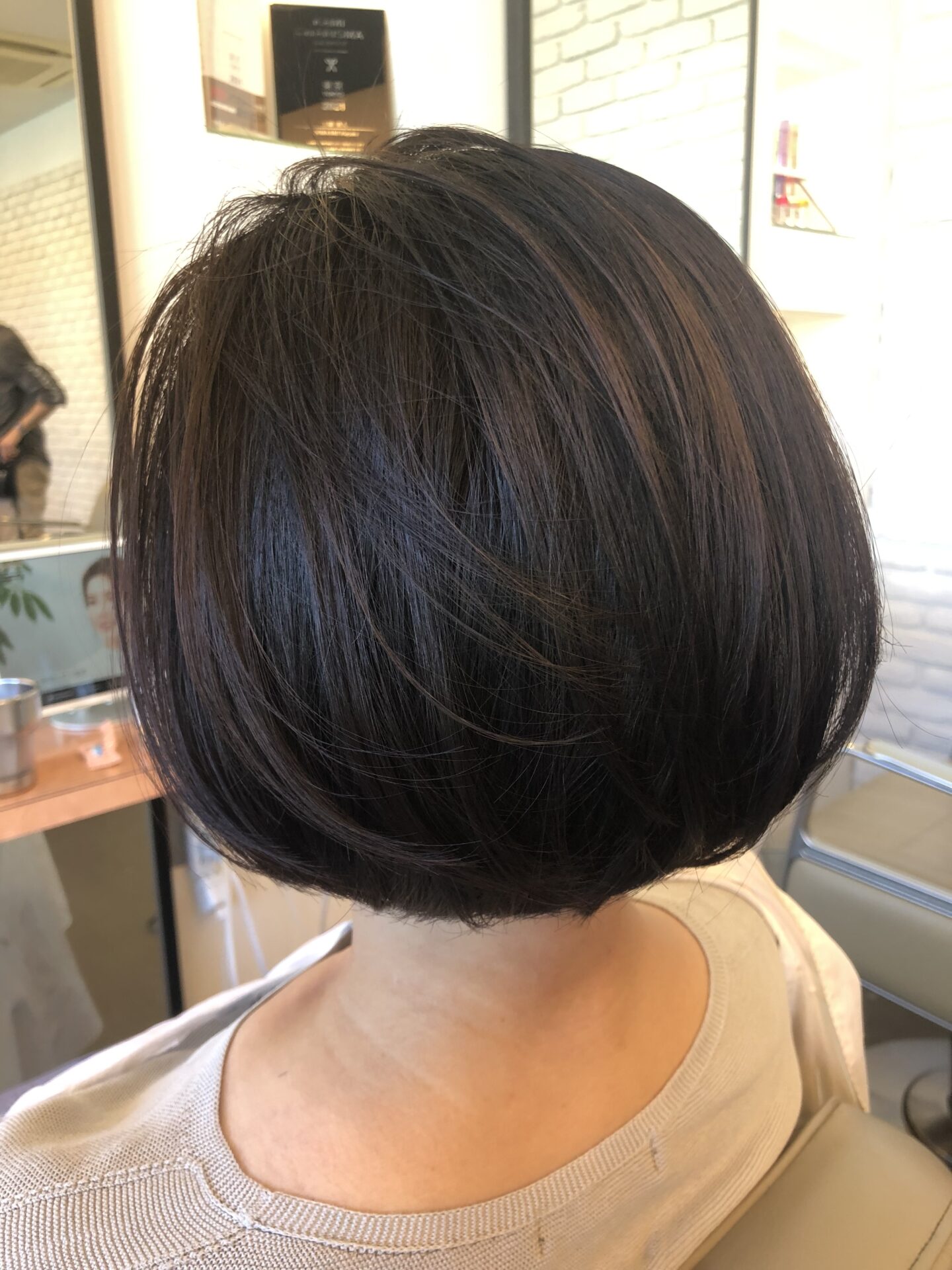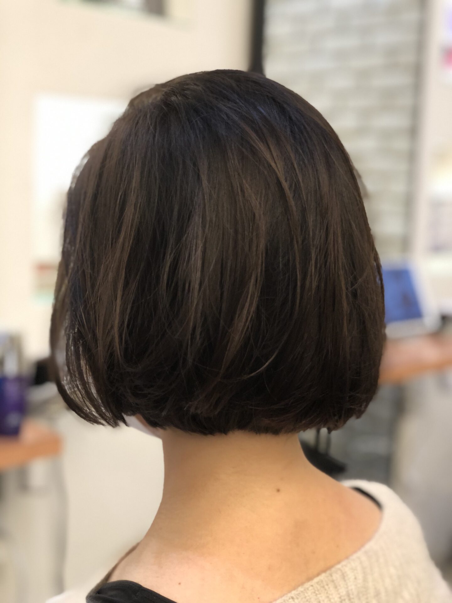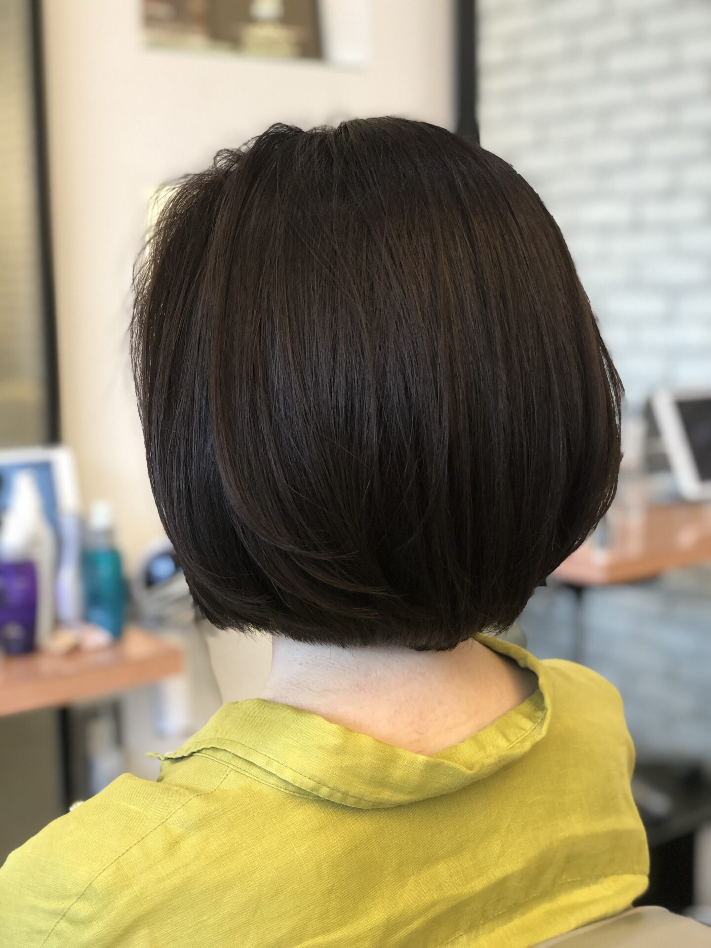ふんわり柔らかく見える大人ボブも定番大人可愛いスッキリボブです。