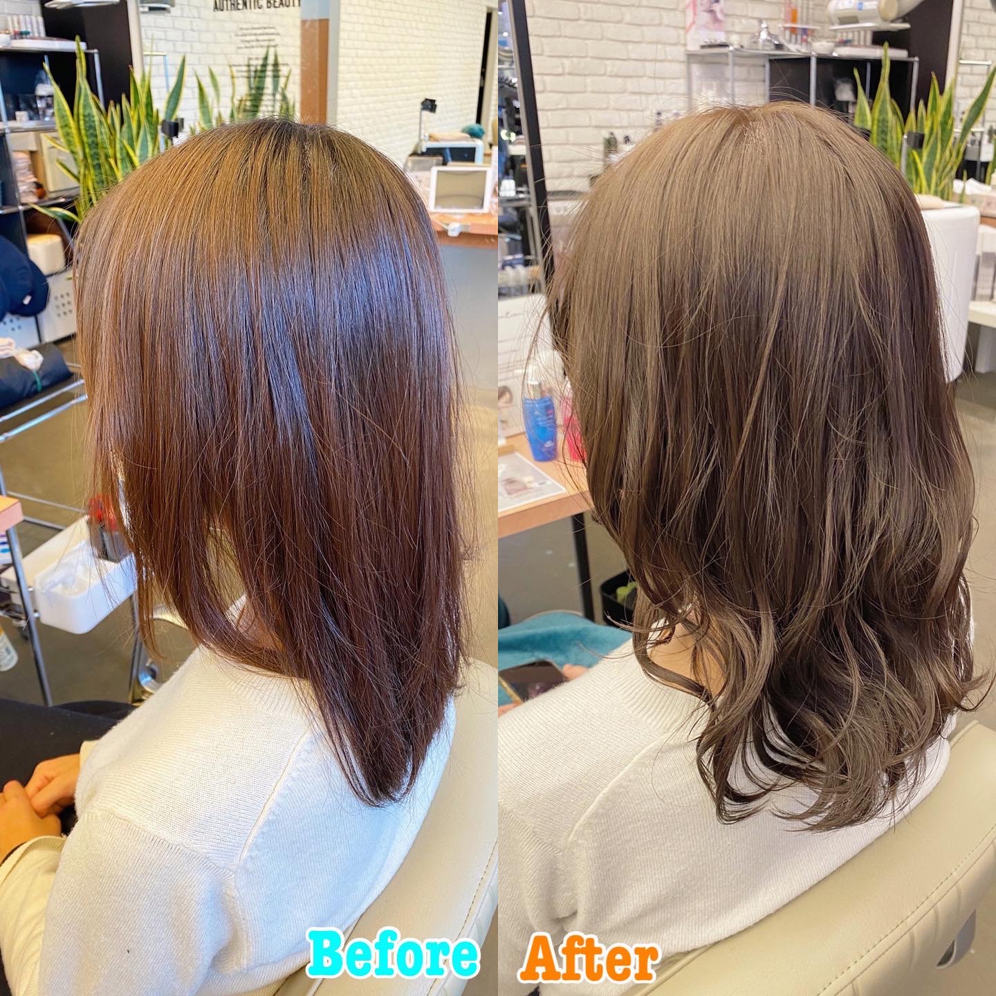 今回カラーさせていただいたのはブリーチはちょっと嫌だけど、艶っぽい赤みがないグレー系のカラーにしたいというお客様でした!