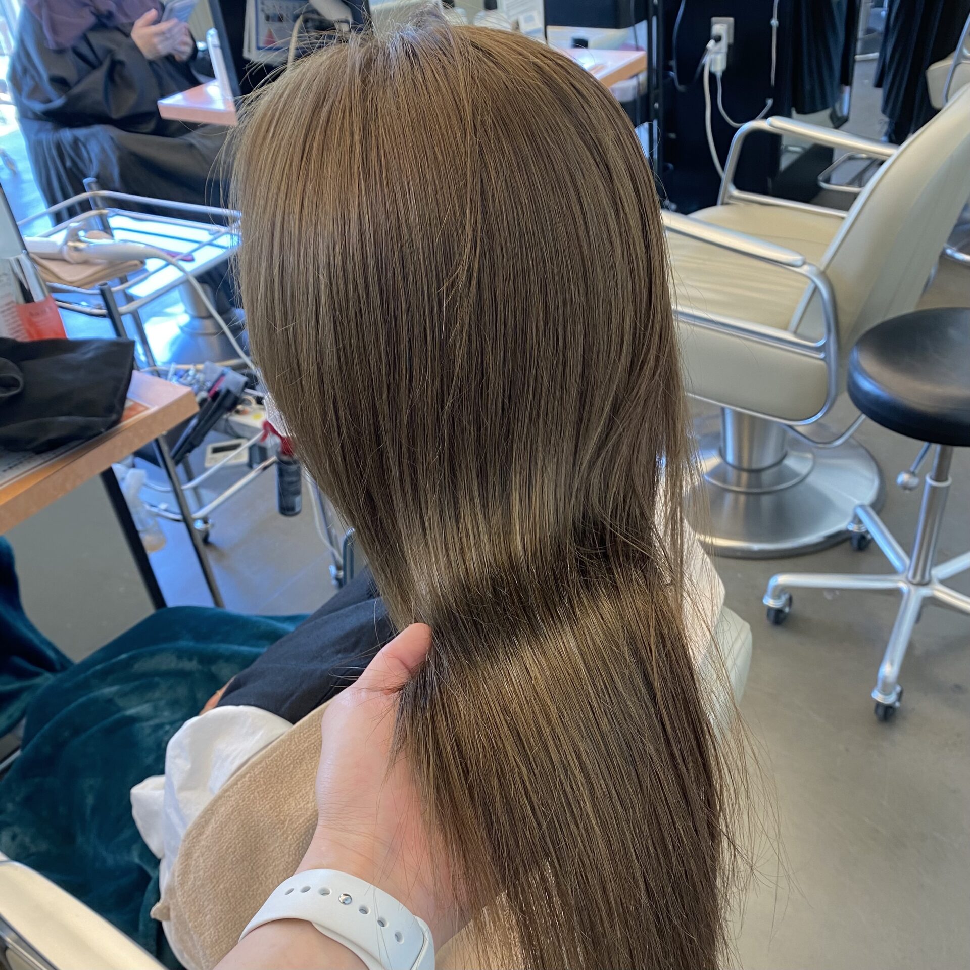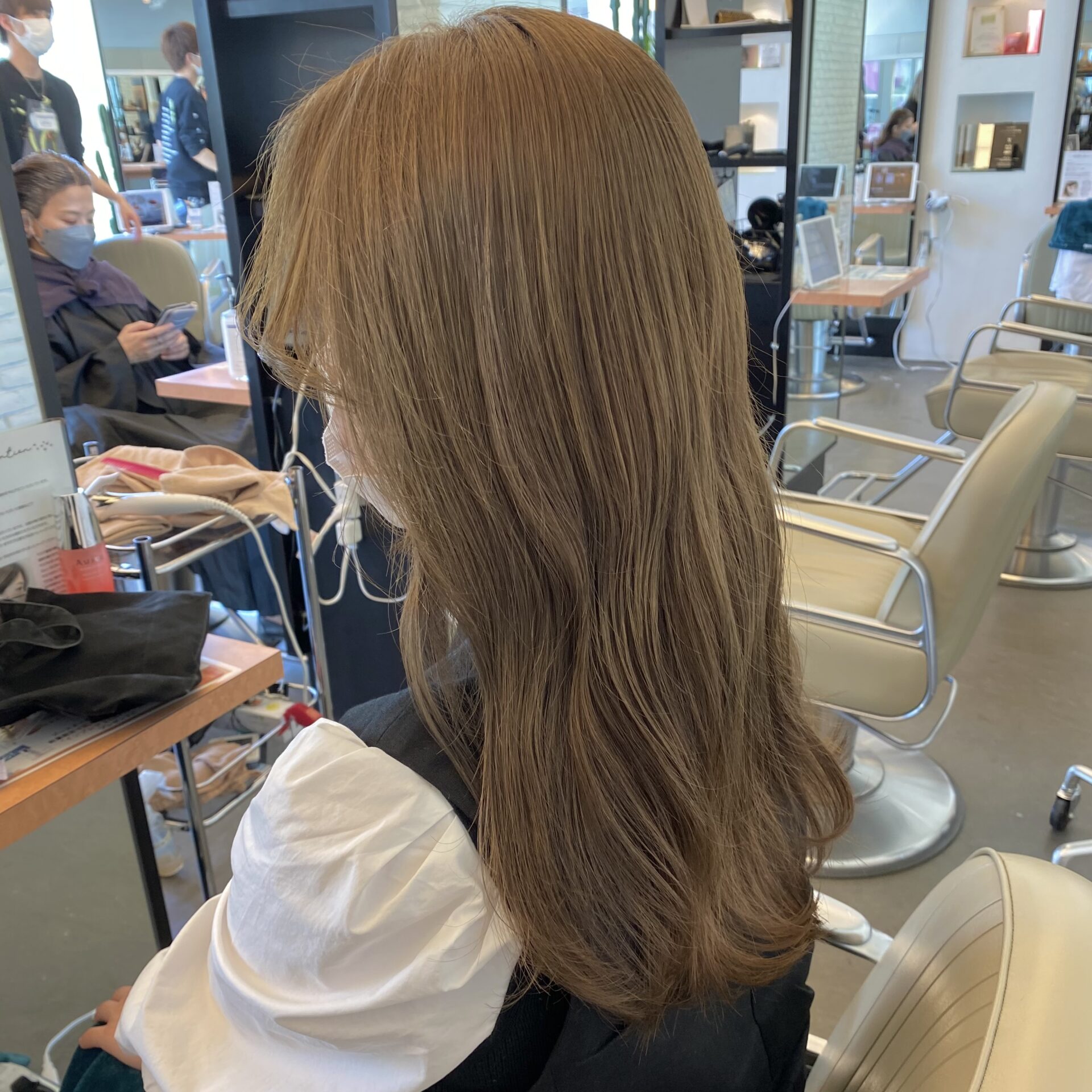 ブリーチ使わなくてもこのくらいの明るさのベージュカラーは可能です。