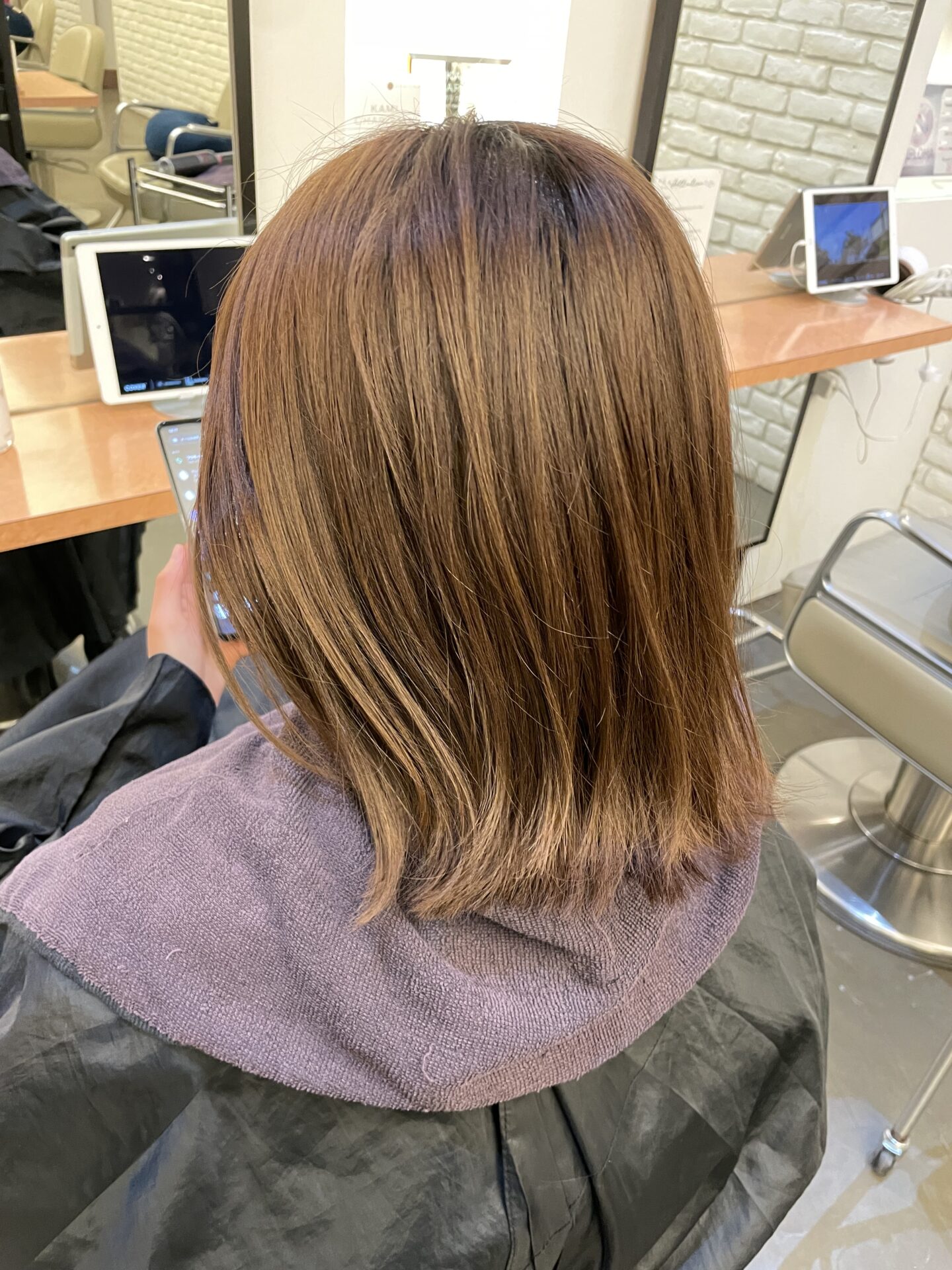 こんな感じで落ち着いた仕上がりになります!オレンジ味が気になる方、透明感のあるベージュなどにしたい方におすすめです‼️